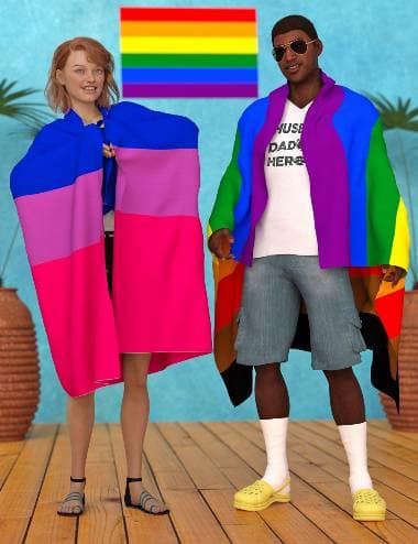 Genesis 8 Female, Genesis 8 Male用のはおれる旗セット。dForce対応。
