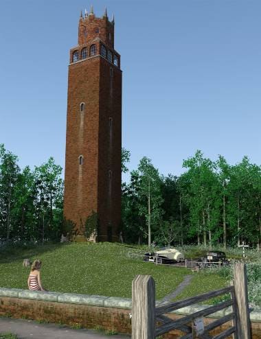 タワー内部は階段と小部屋のインテリアがあり、周囲は池と小道とフェンスとさまざまな植生を調整できます。