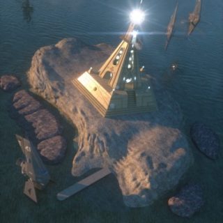 入江と岸壁。岸壁に建物を設置したりできる幅もあり