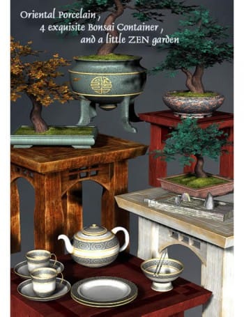 中華風の盆栽とティータイムセット
