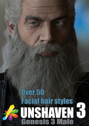 Genesis3 Male 用のひげセット。Iray対応マテリアルで前バージョンより生え際が自然な気がする