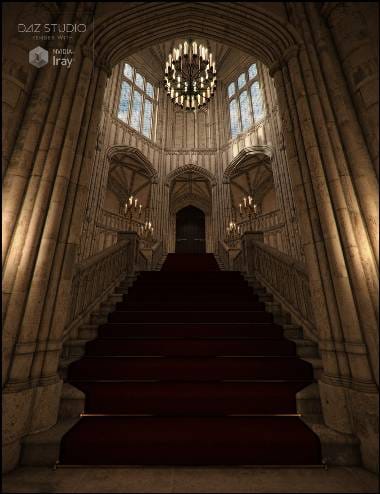 ゴシック様式のファンタジーな塔内部。階段と廻廊
