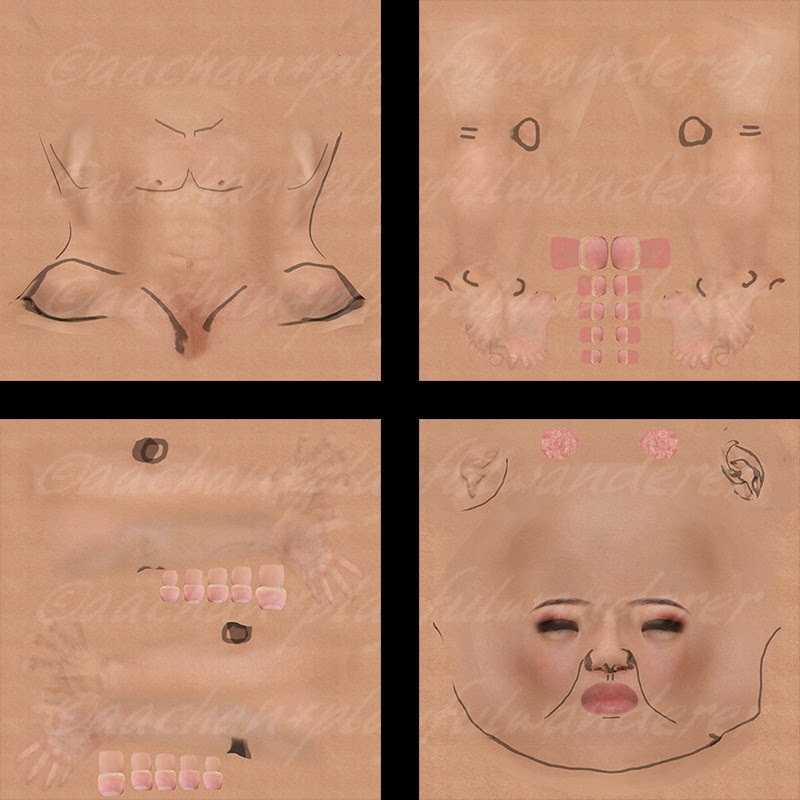 そういやなんか健康的な肌を作っちゃったけど、使おうとしていたのはもっと病的に青白い肌だったと気づいて、これをベースに色味や血管書き込みなどで再修正。