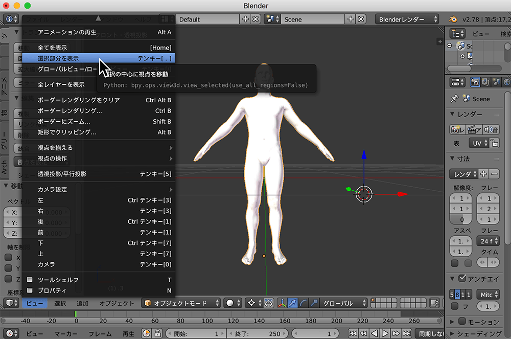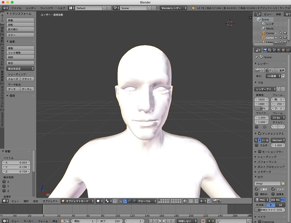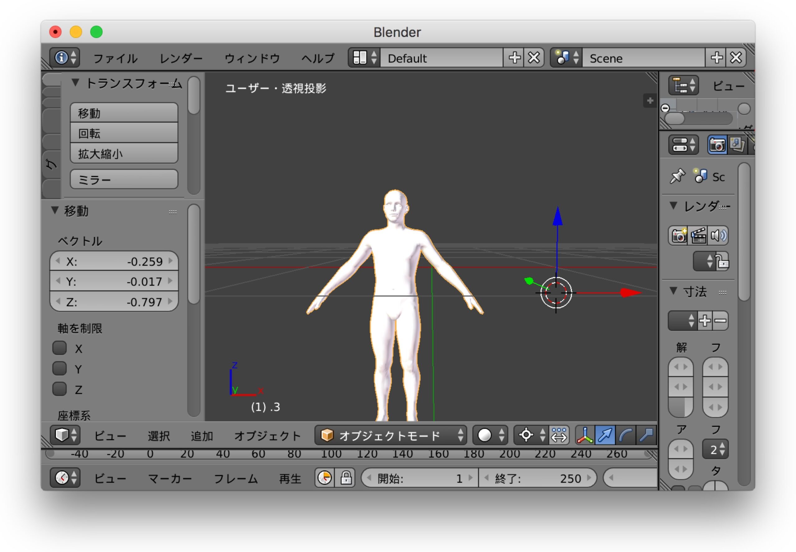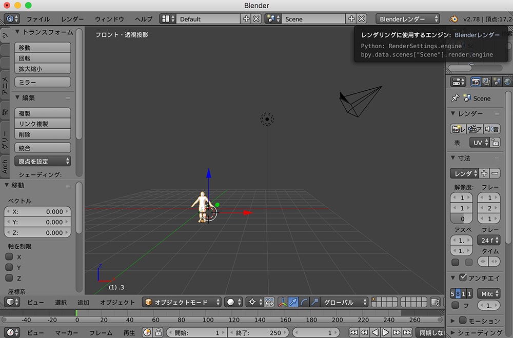 現段階の環境は、Mac OS Sierra 10.12.3。Blender 2.78b-OSX_10.6-x86_64