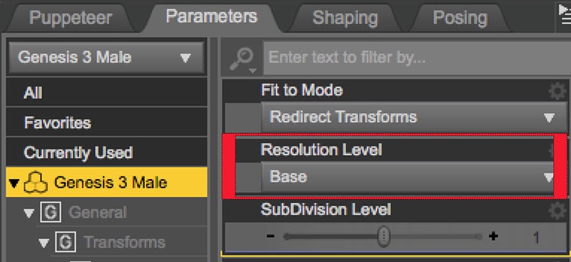 で、とりあえずさっそくDaz StudioでGenesis3 Maleを呼び出し、書き出し用にテクスチャを全部剥いでResolution Levelを「Base」にしたものをマネキンとして用意する。