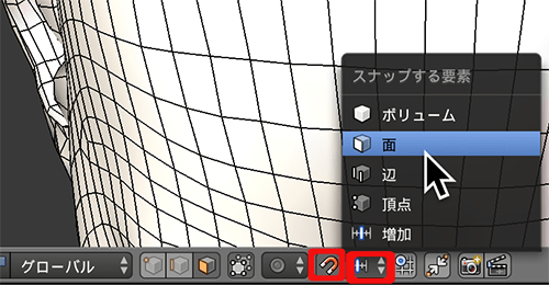 すると、頂点、辺、面を選択できるコマンドが現れる。