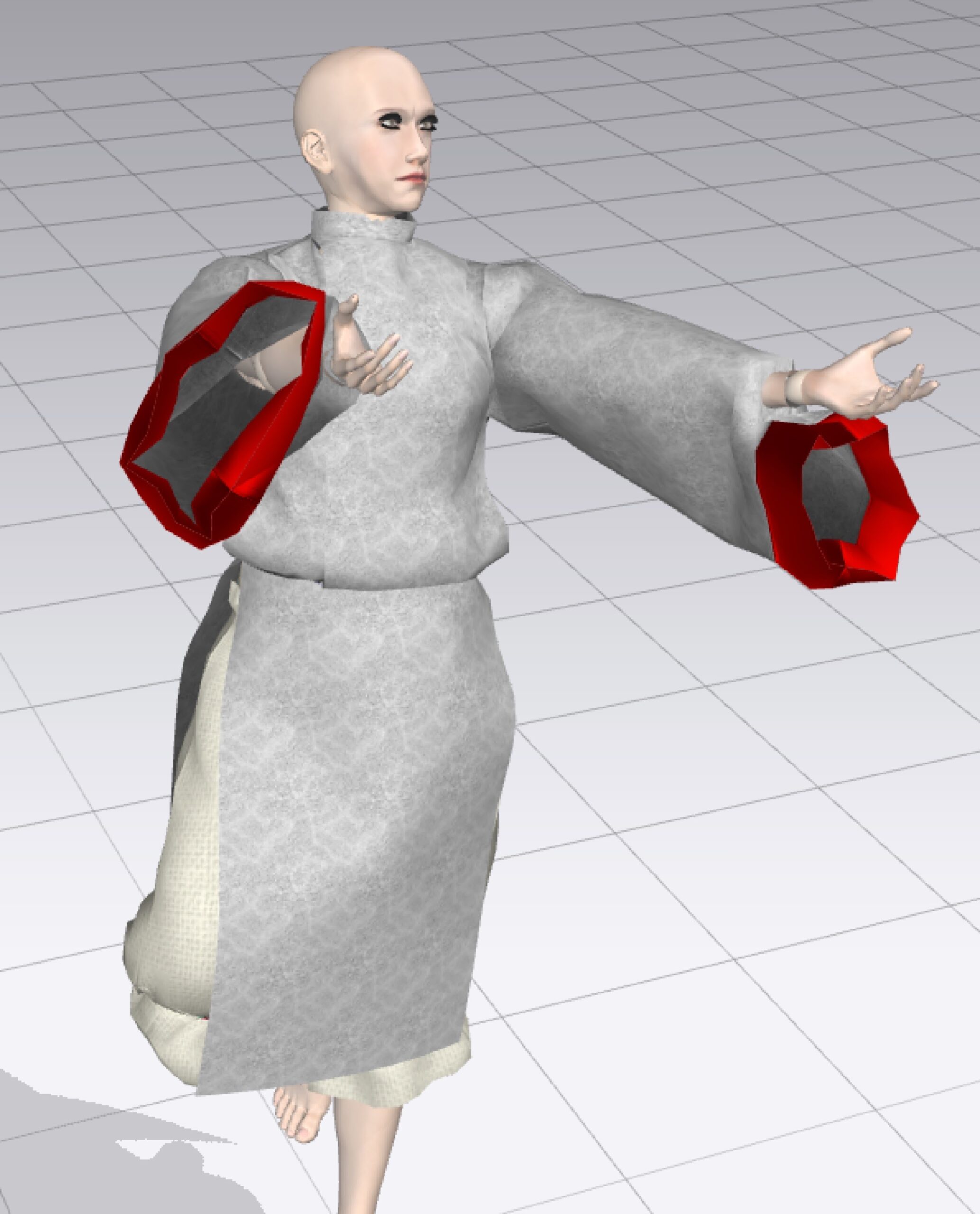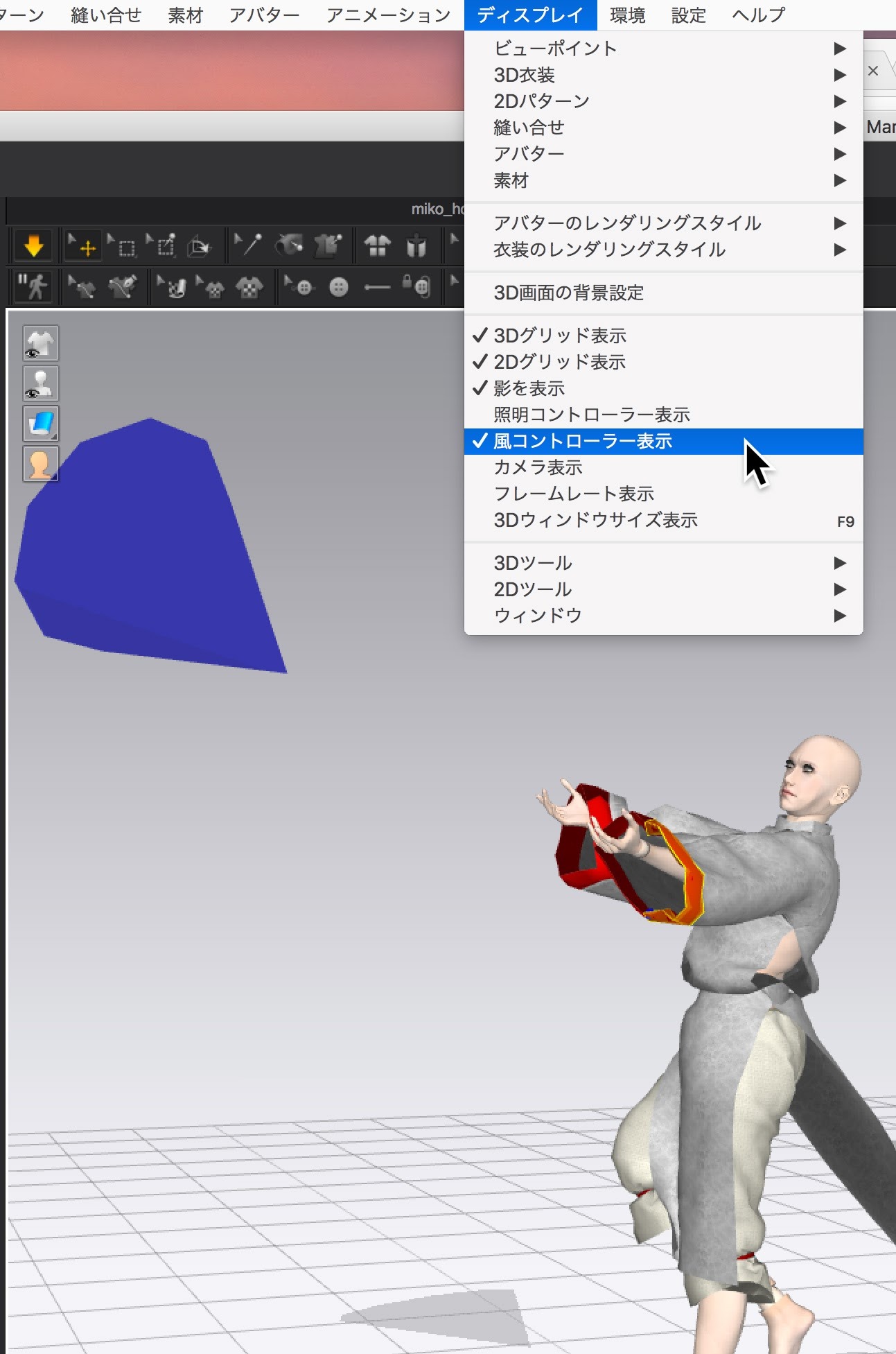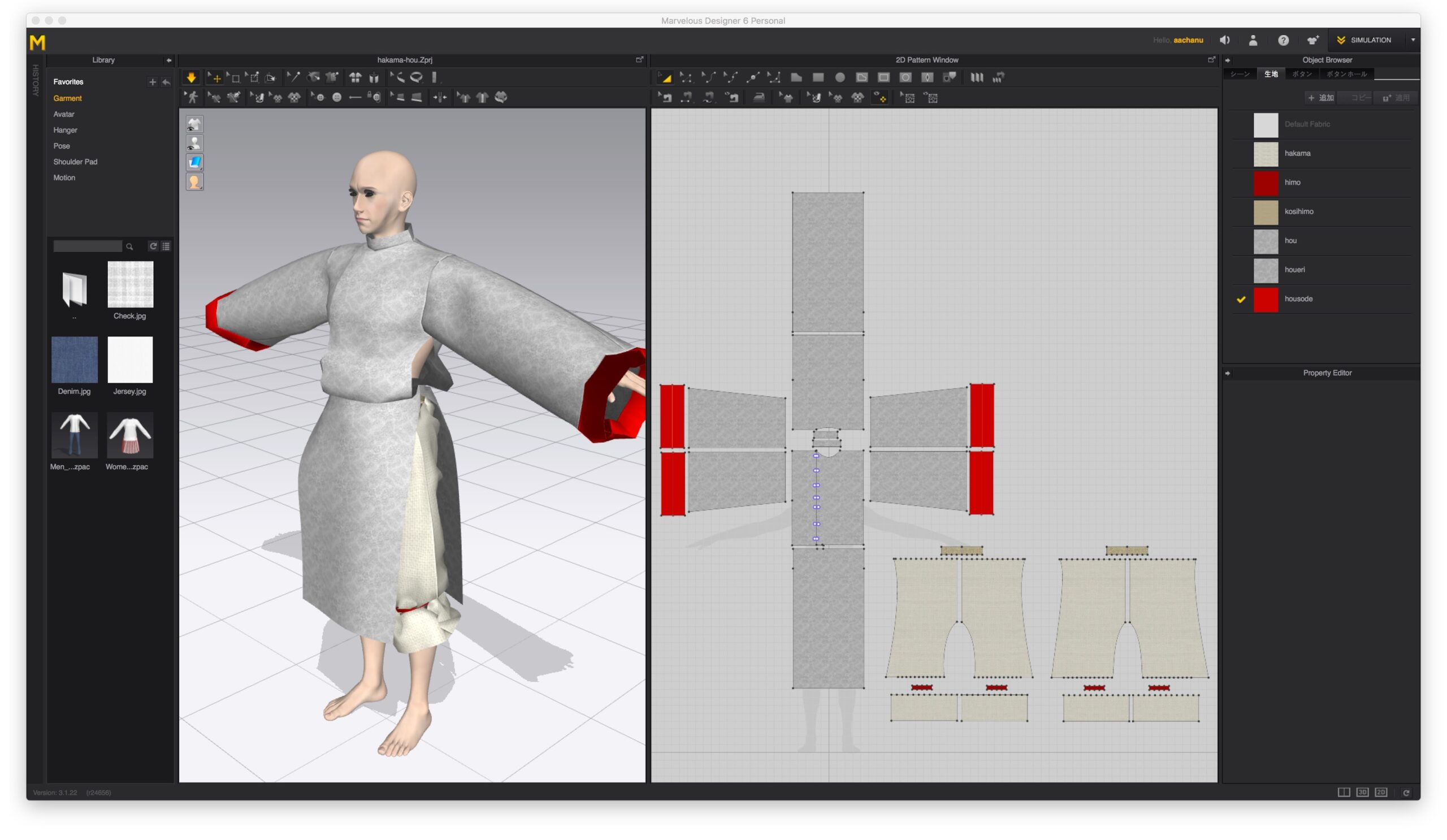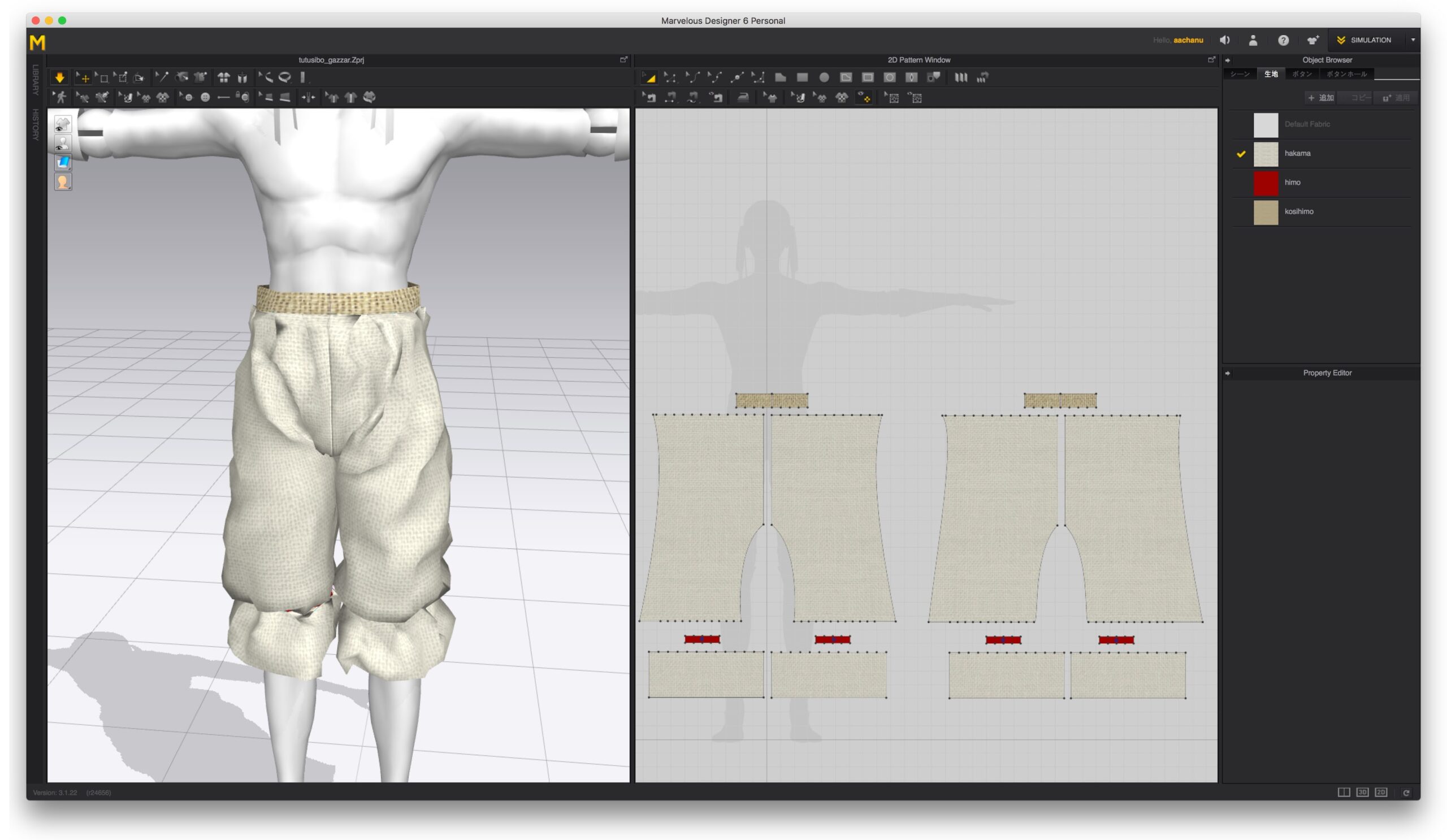 袴と別々に作って保存したOBJを衣服として取り込んでも、MD内でウェイト設定までしていないマネキン状態のオリジナルフィギュアではDCシュミレーションもうまくいかなかったので、同時に上着部分も作ってしまうことにした。