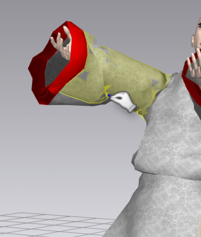 このくらいならまあポーズで修正もできるが、シュミレーション後にちょいちょいと引っ張ってかぶせてみた。
