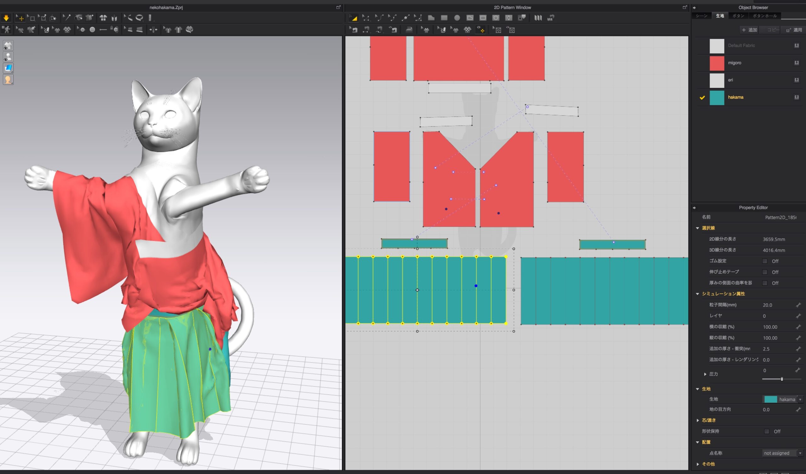 で、ぐちゃぽんになったシュミレーションをリセットすると、結局あとから作った袴もまた同時シュミレーションになっちゃうとw