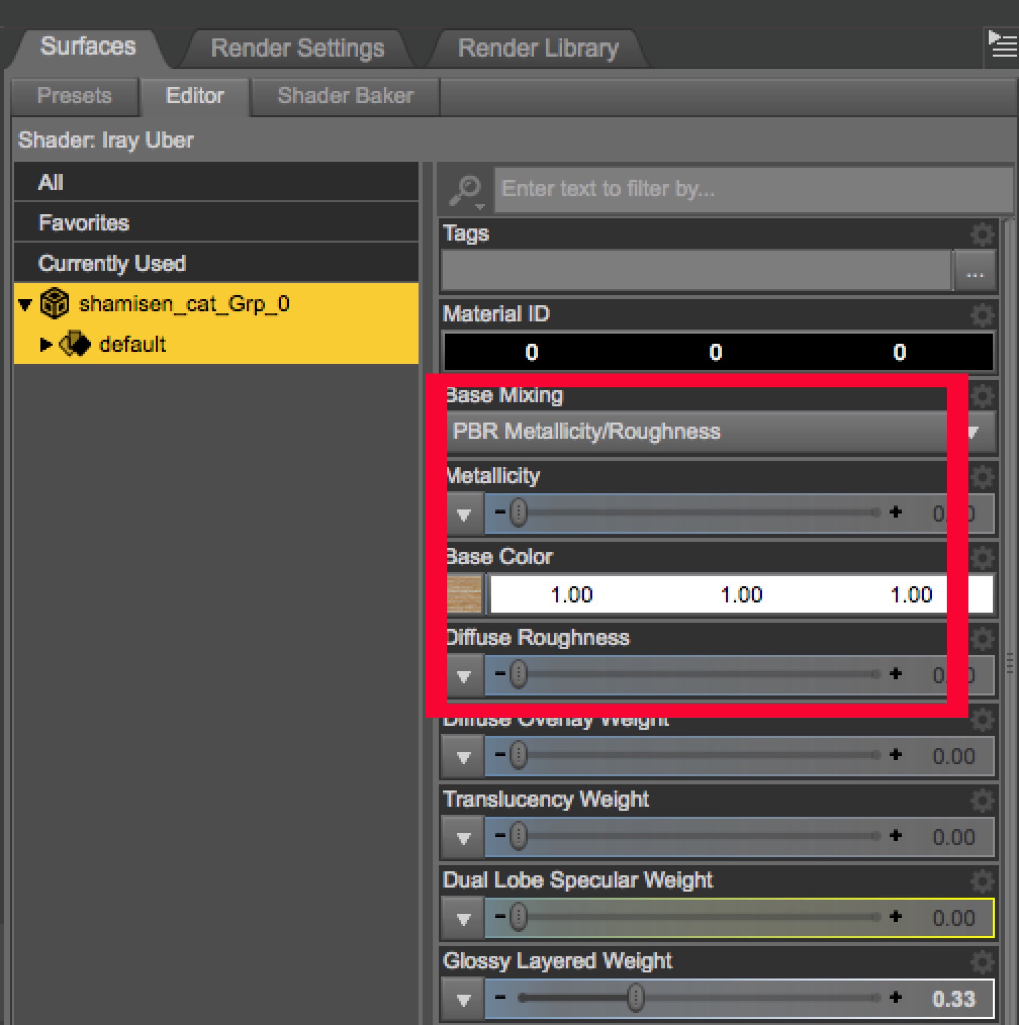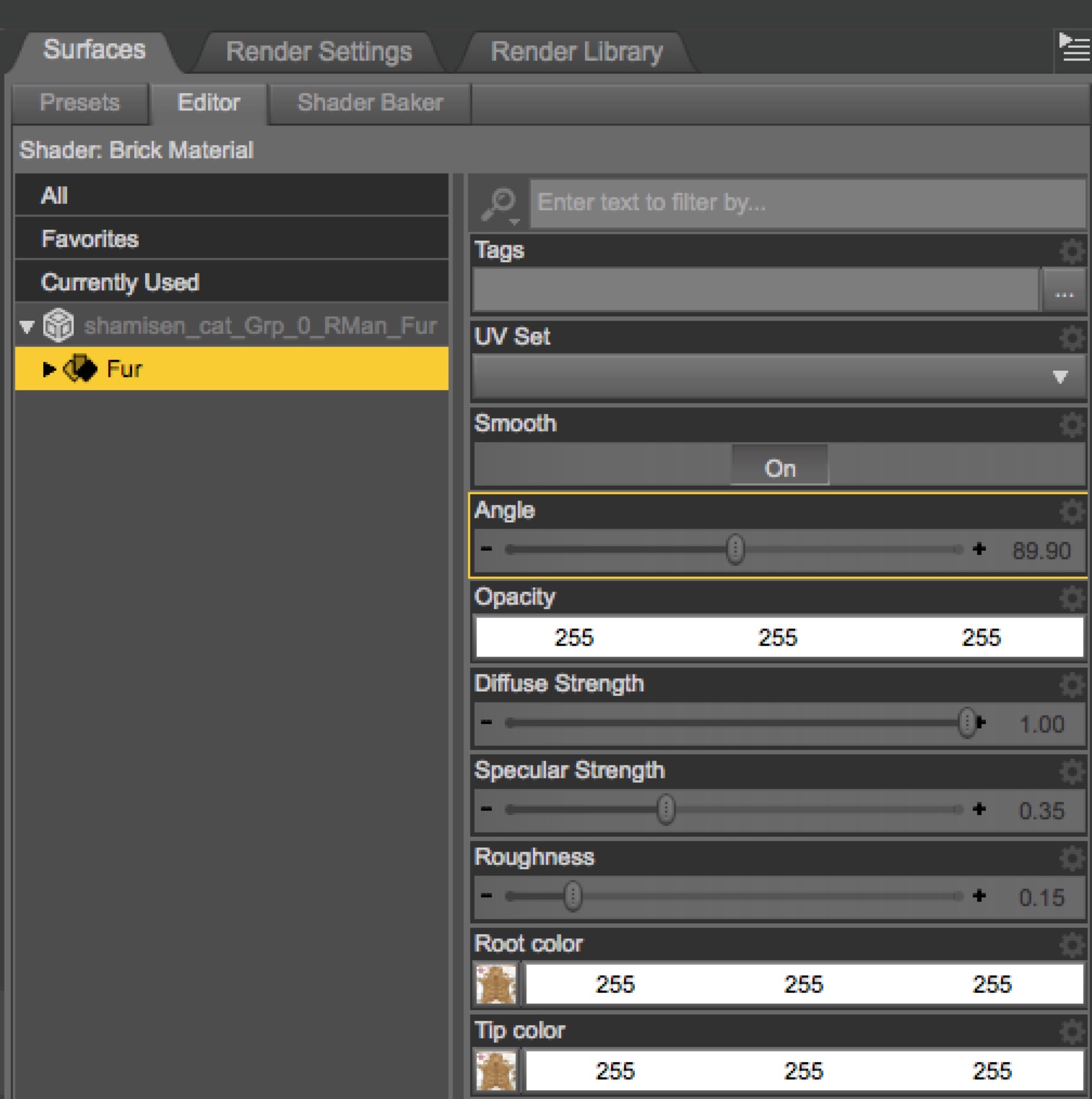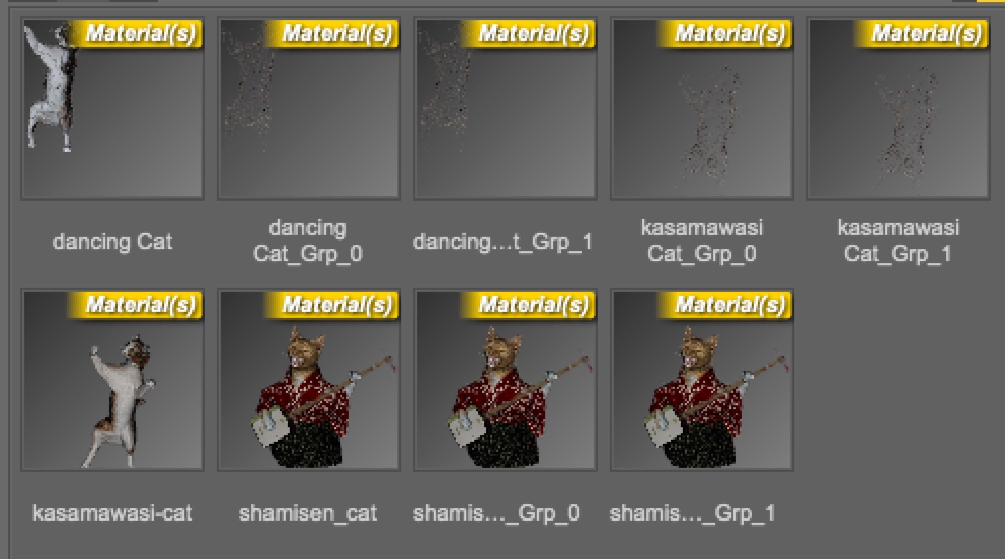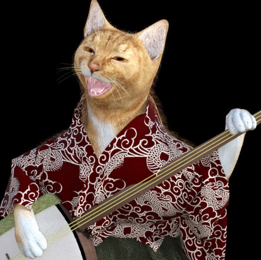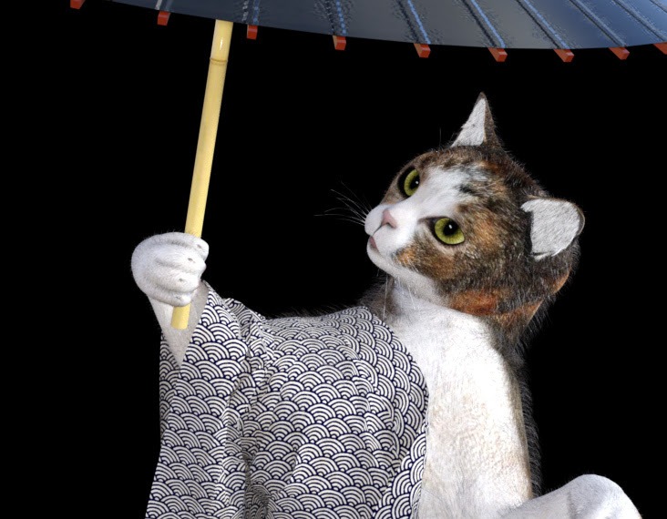 すべてのオブジェクトごとにマテリアルプリセットを作っておけば、丸ごとObjとしても良いのだろうが、面倒なので今回は猫と毛の部分だけ。