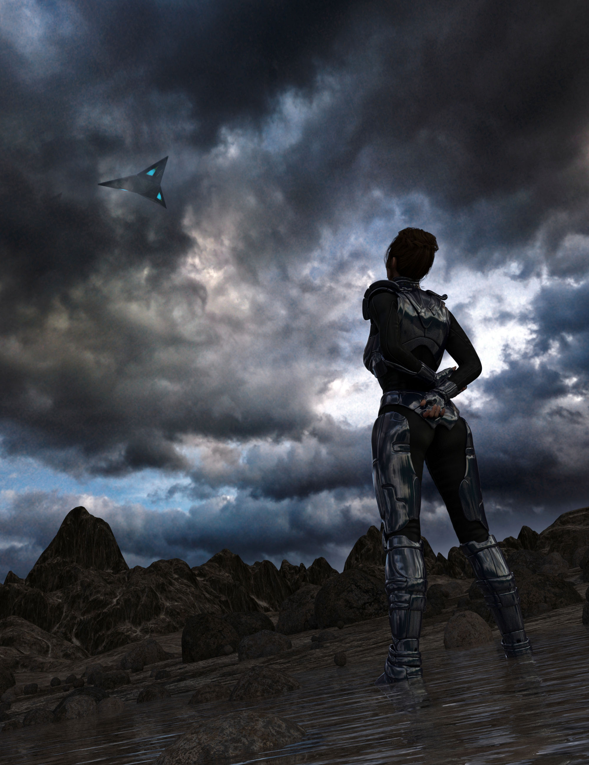 また、いまいちHDRLの雰囲気がぼやっとしてしまうので、思い切ってKindredArtsさんのIray HDRI Spaceという宇宙の巨大な惑星に変更。非現実的だが引き締まった気がする。