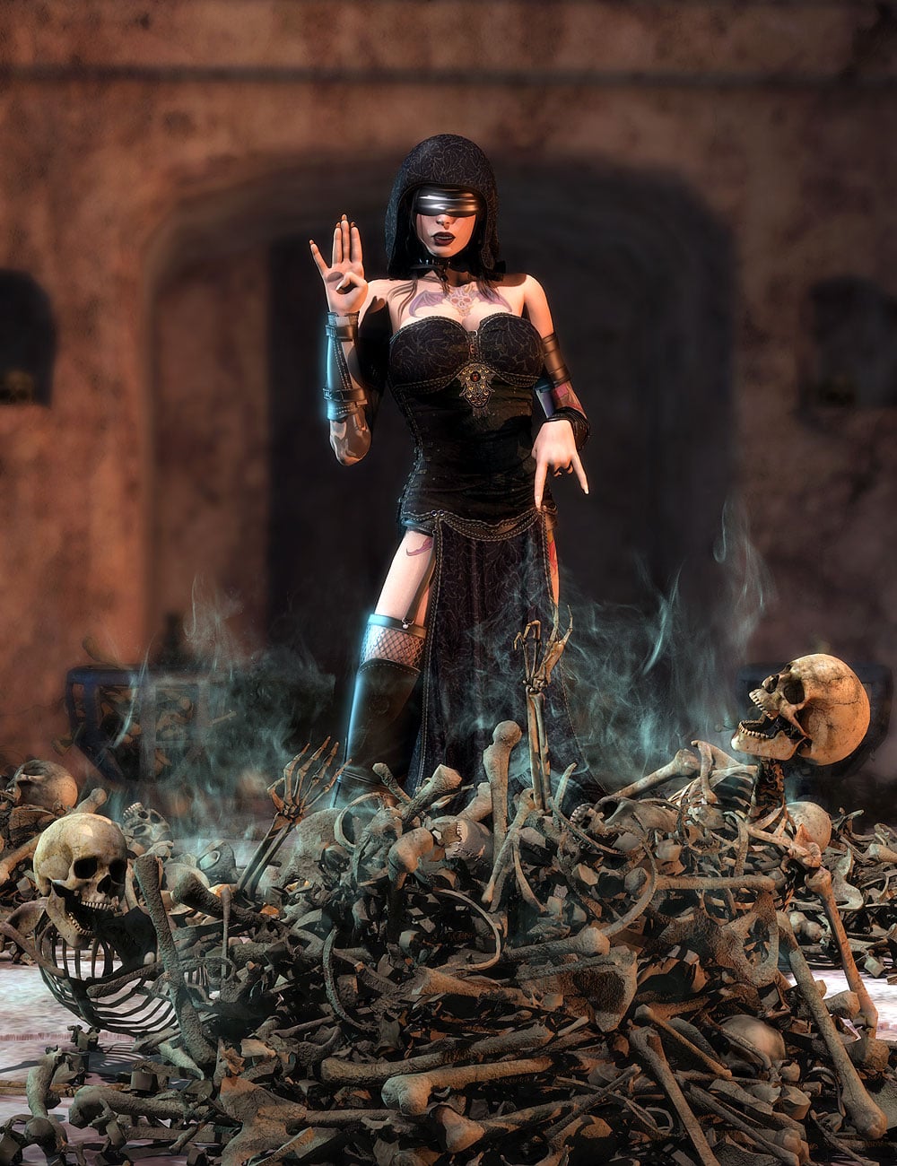 もともと「戦う骨」系なので、戦場に散らばった感じにするポーズをどうしようかあれこれいじってるうちに、Renderosityでさらに意図に沿ったスケルトンを見つけた。