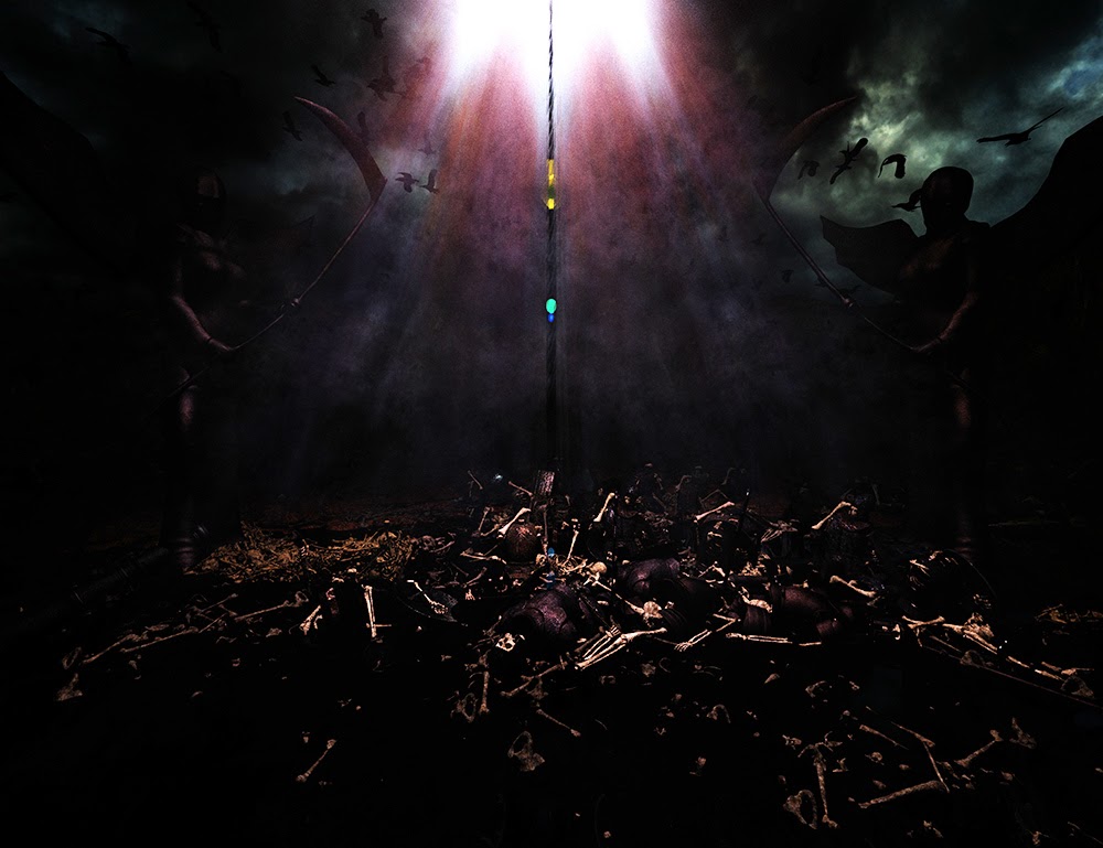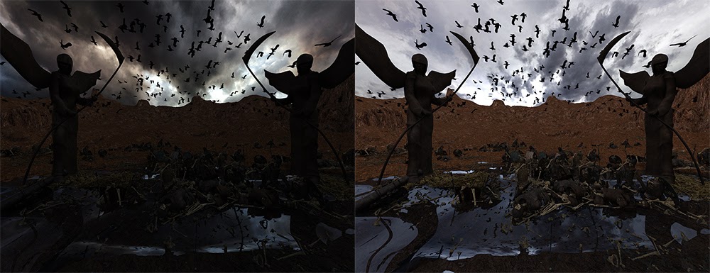 さらにまがまがしさを出すためにカラスの大群を頭上に飛び回らせることにした。