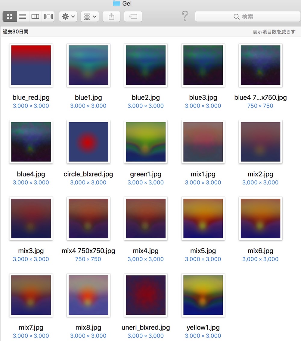 なかなか思うような効果にならなくて、少しずつ変えた画像を作成してレンダリング結果を見て修正を繰り返して大量のファイルにw