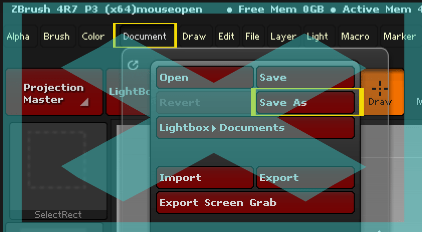 File>Save As でプロジェクトとして保存されます。ファイルダブルクリックで前回作業したモデルも読み込まれた状態でZbrushが起動します。