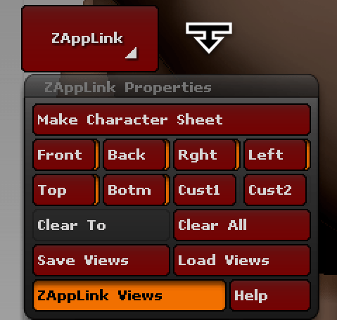 b.Document>ZAppLink ボタンの下にある 「ZAppLink Properties」を開き「Front」のボタンを押す(同時にBackにも自動的にチェックが入る)