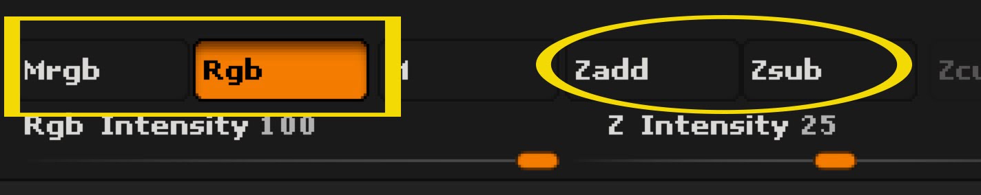 モデル上にペイントするには、ビューポートの上のブラシ設定でZaddをオフにする必要があります。(dispやバンプマップも必要な場合を除き)