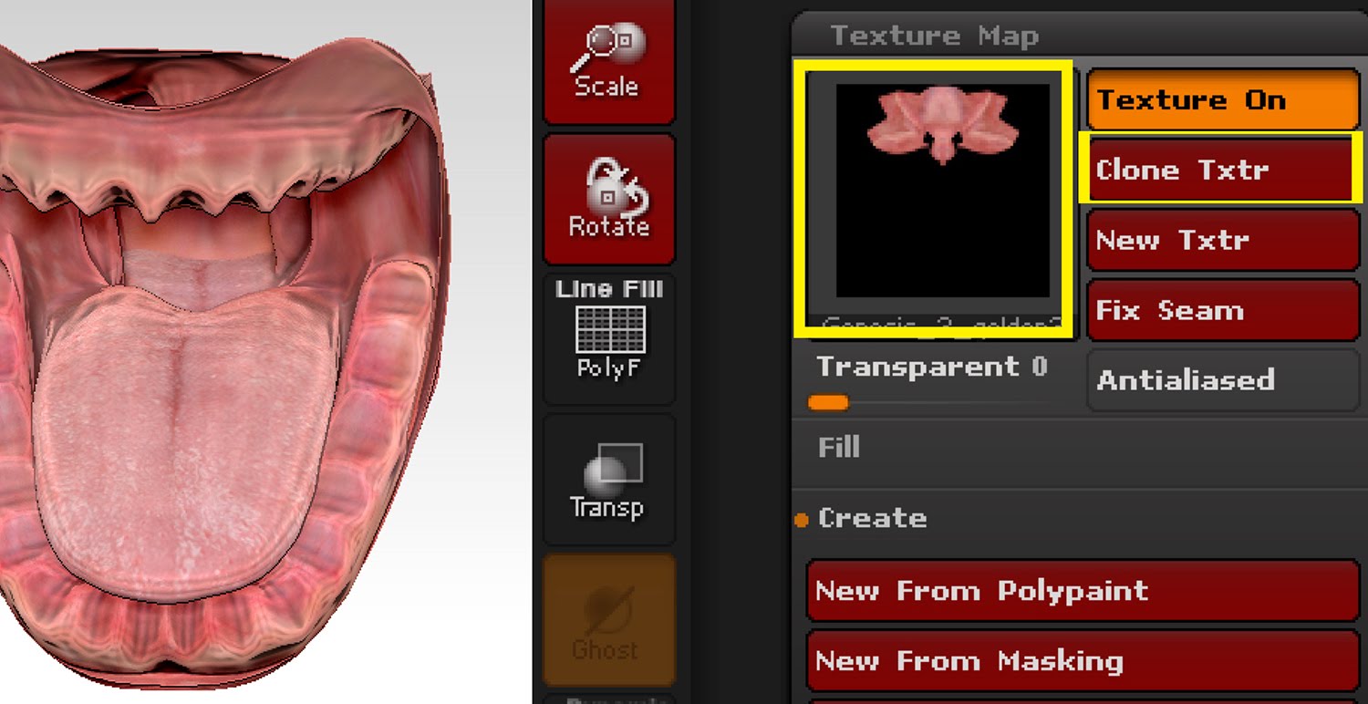 Texture Mapの「Clone Txtr」をクリックすると ビューポートの反対側に複製されます。