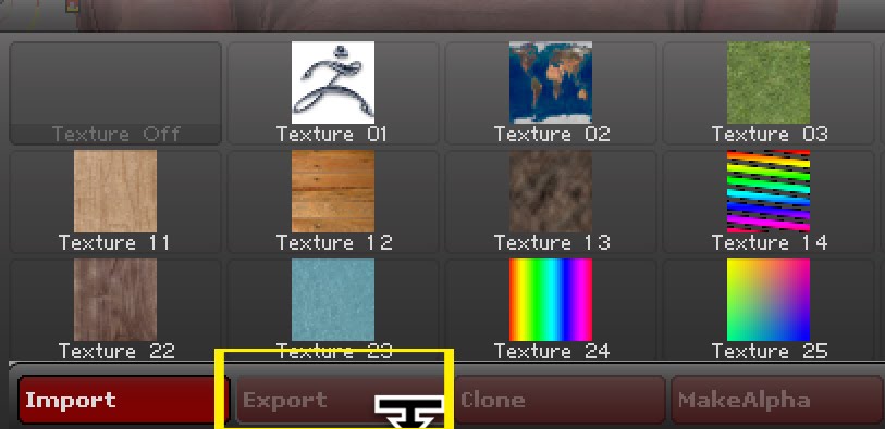 サムネイルクリックでテクスチャウィンドウが開くので、一番下にある「Export」ボタンを押す