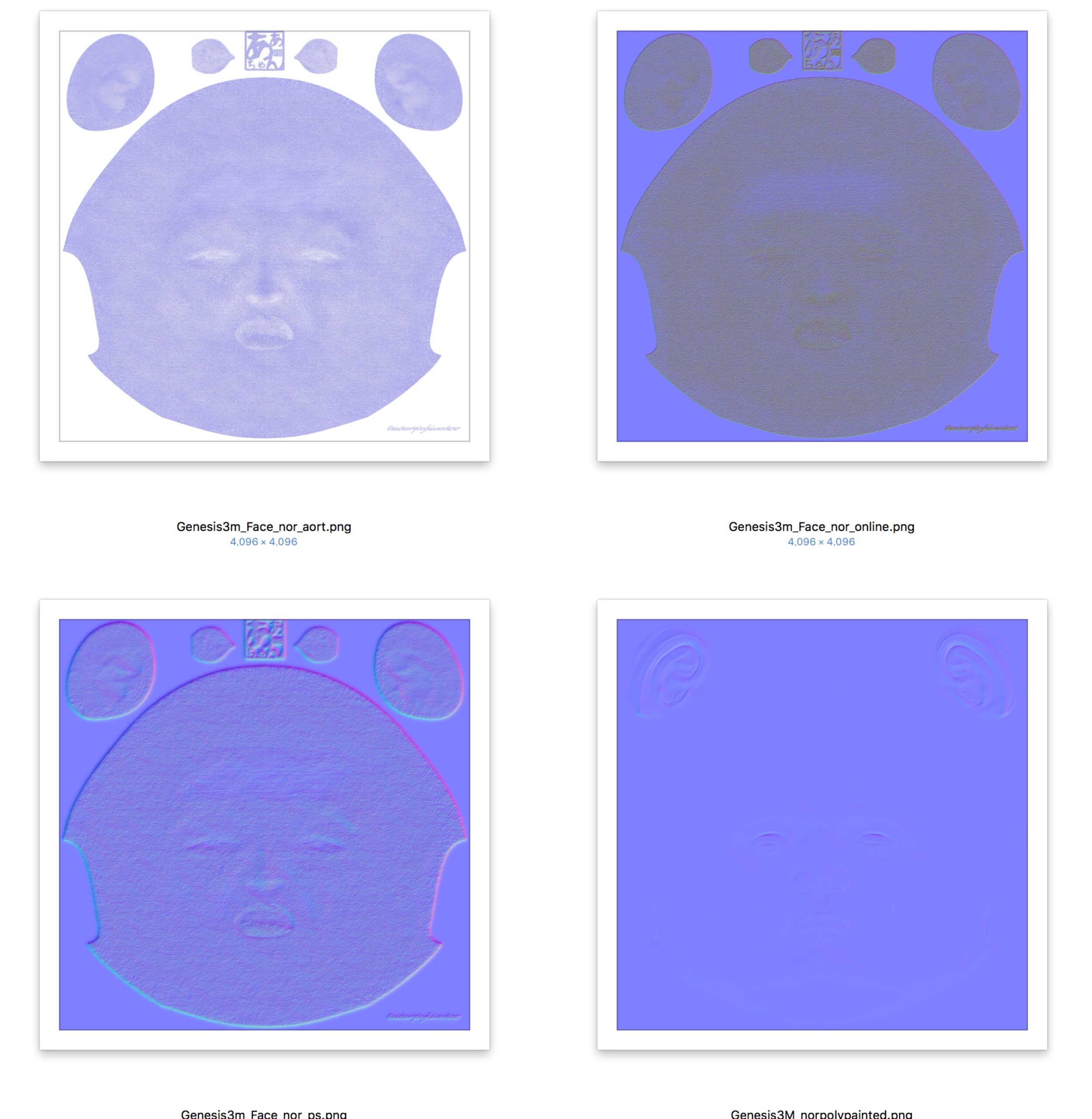 Photoshopに持ち込んで書き足した分か、もともとZbrushでエクスポート時に何かあったのか確認のため、元のエクスポートされたままの画像と比較してみた。