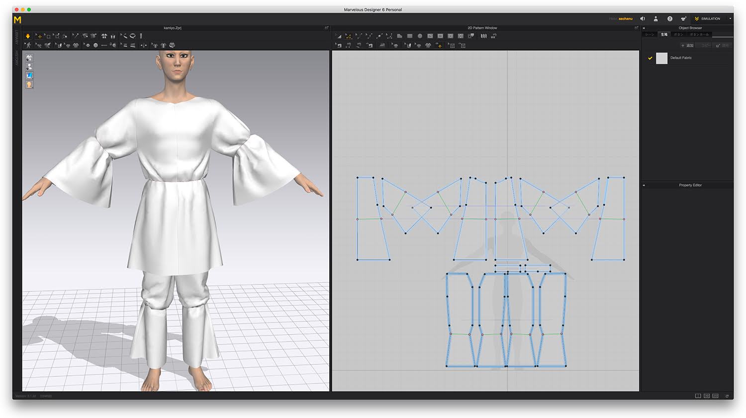 指とか引っ掛かったり変な方に生地が流れそうになるのを、シュミレーション計算中にぐいぐい引っ張って整えて完成。