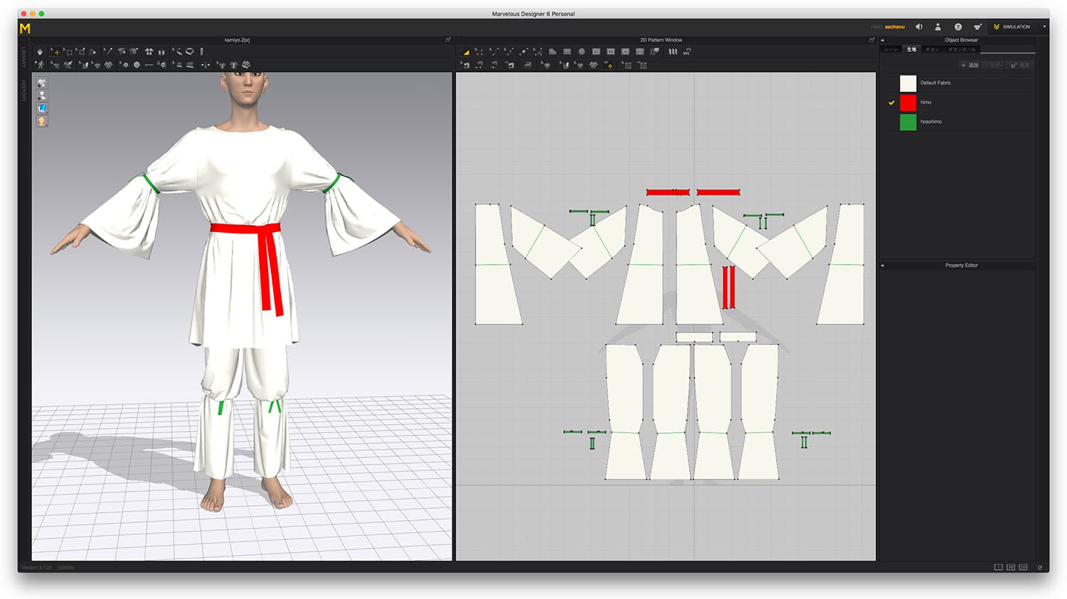 で、シュミレーションでベースの形状ができた状態に、紐や帯を上からかぶせるように付け足していく。