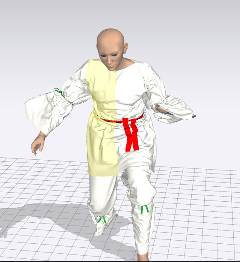D|Sでテストレンダ時に決めたポーズをobj形式で吐き出して、ポーズファイルとしてMarvelous Designerに取り込めば、徐々に変化していくポーズにあわせてクロスシュミレーションができる。