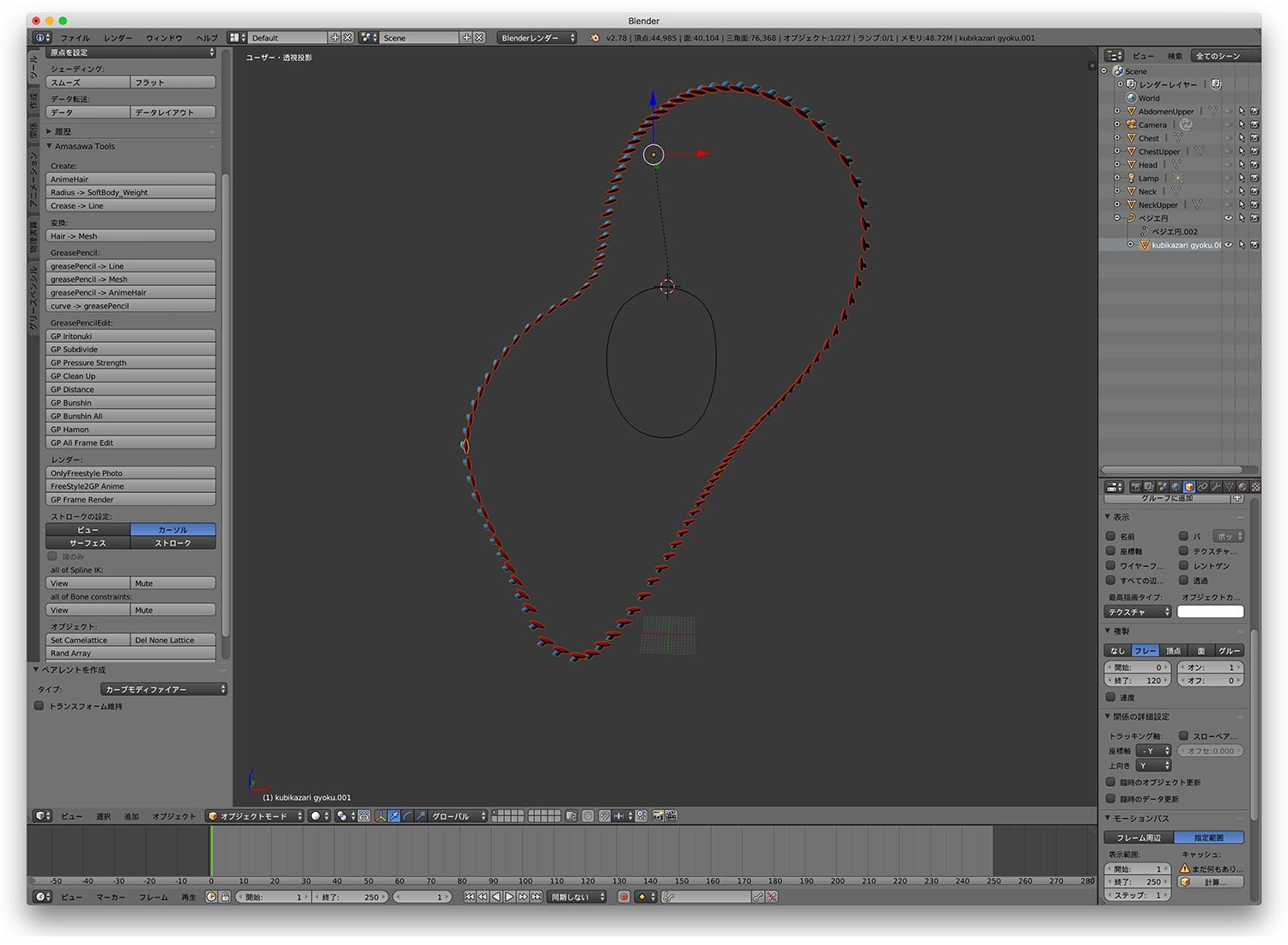 首飾りはBlenderのベジエ曲線からObject ModifiersのCurveを利用して配列。