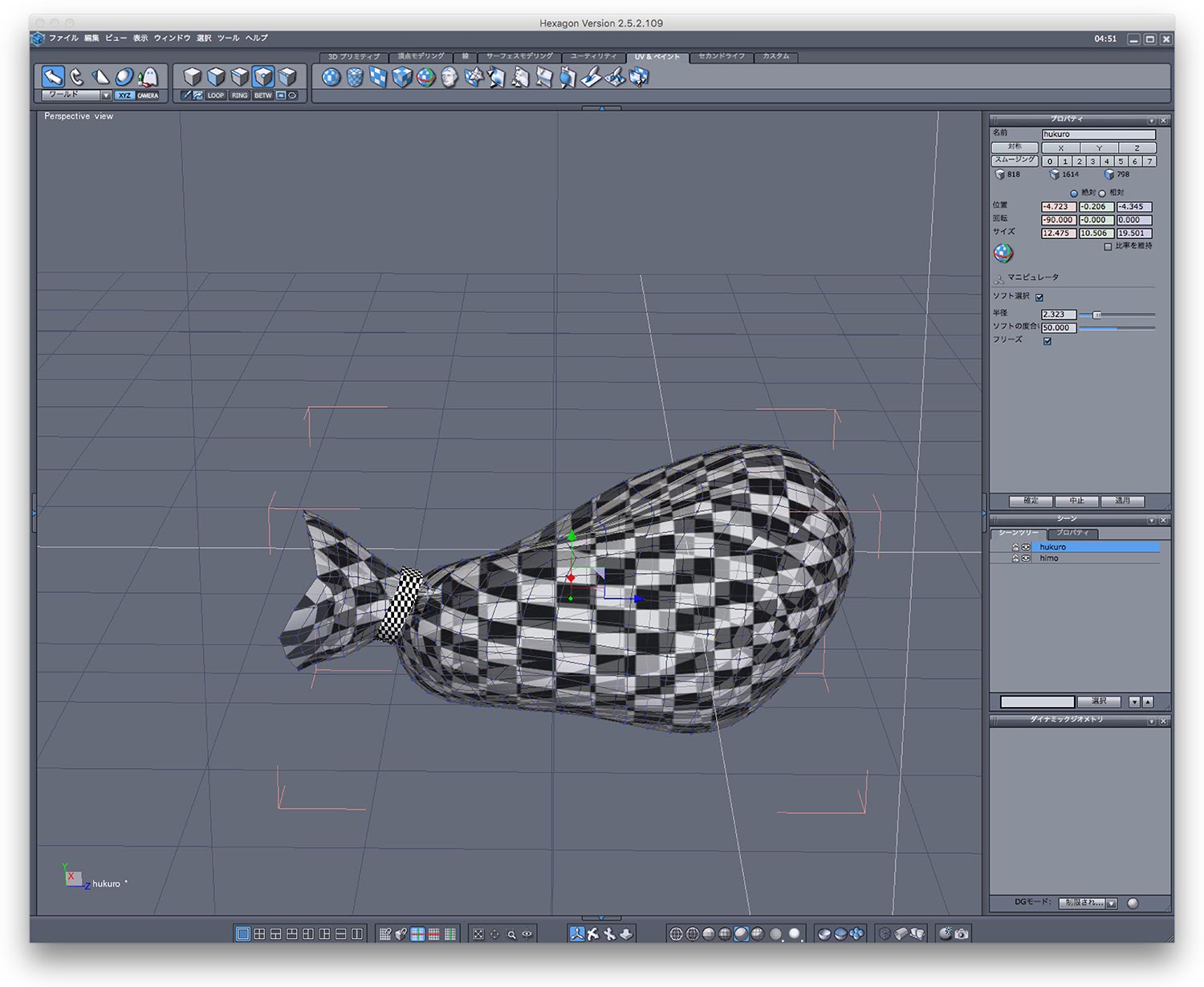 大国主神は頭陀袋がトレードマークのようになってるから、これまたかなり適当にHexagonでごちゃごちゃっと変形して作り上げる。