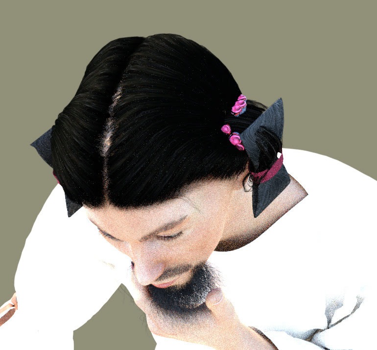ベースとして2つ分けで髷をつけられそうな「Melia Hair」をお団子サイズ最小限でかぶせ、そこにスーパー適当モデリングした髷をくっつけた。