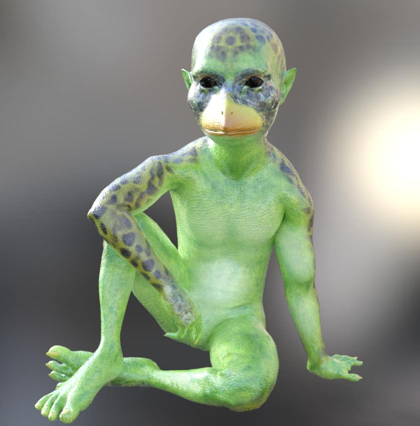 テクスチャの方も作りこみ開始。カエルや爬虫類系の模様を合わせてみたんだがいかがだろうか。