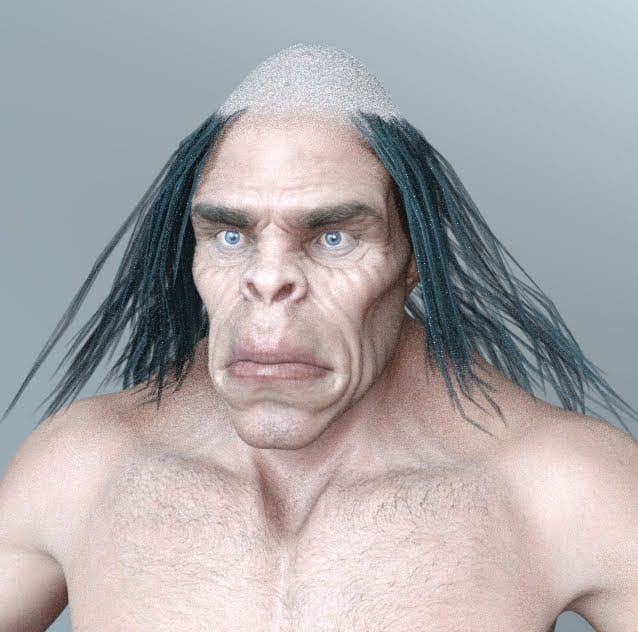 見直しついでに、はげ皿部分から毛が生えてるっぽいのも不自然でおかしいので、頭皮部分を作り直して髪部分といったん分けて別々に取り込み、フィギュア化することにした。