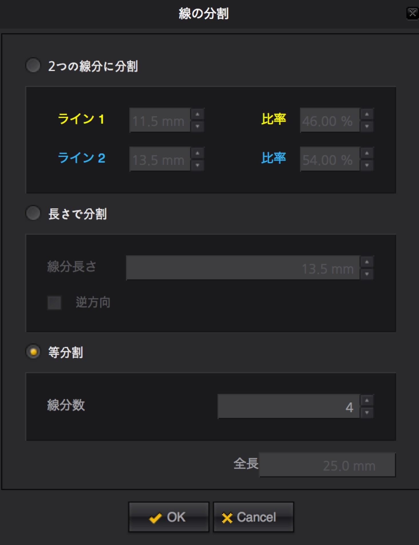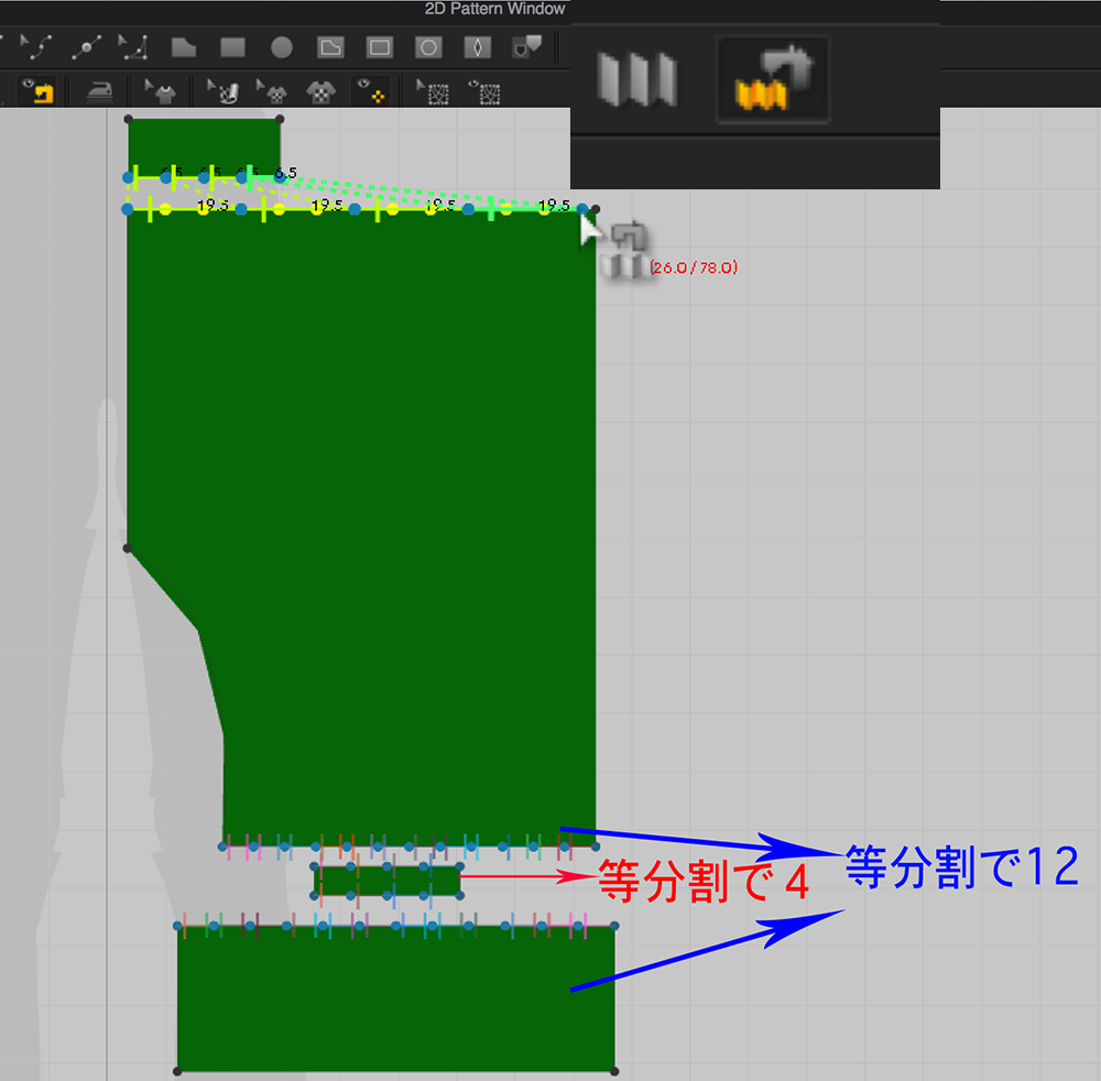 分割したい辺をパターン編集ツールで選択し、右クリックメニューから「分割」を選ぶ