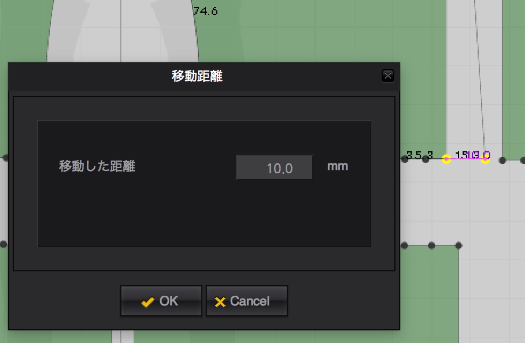 頂点を移動する時、動かしている途中で右クリックすると、移動距離のウィンドウが開いて数値指定できる。