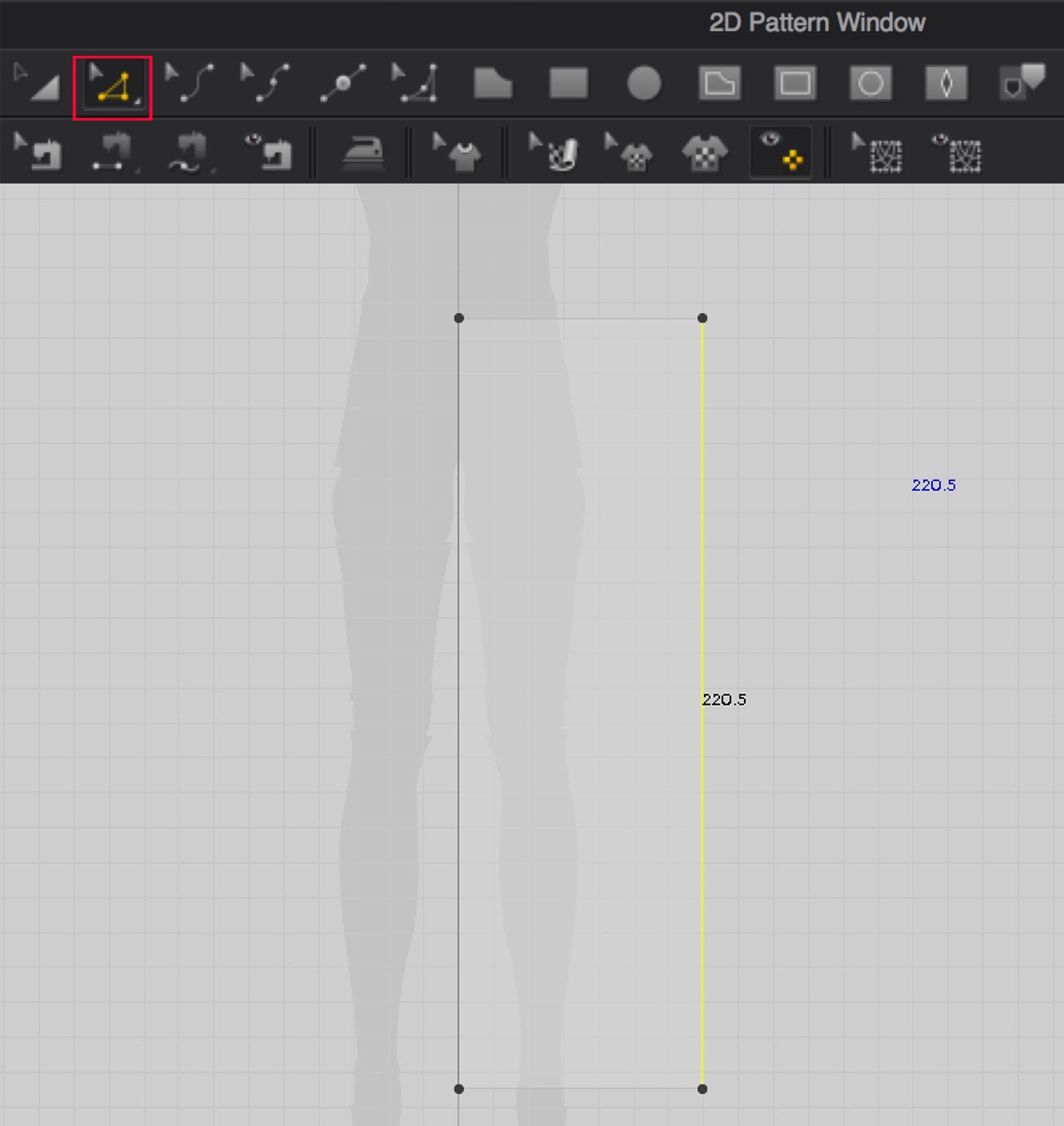 「パターン編集」ツールで頂点を動かしたり、頂点削除したりして変形する。