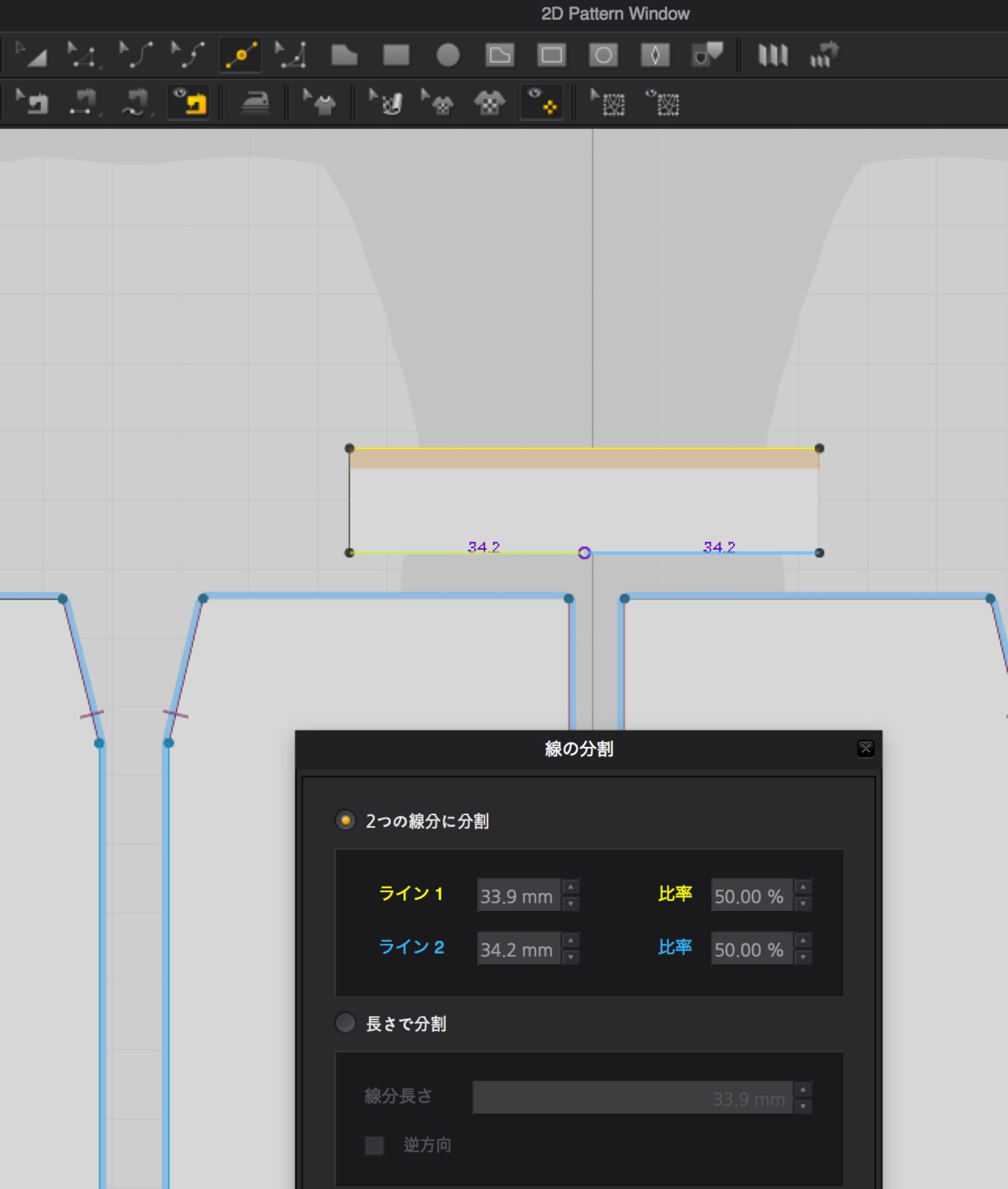 「パターン編集」ツールで確認できる。(この設定の単位はmm)
