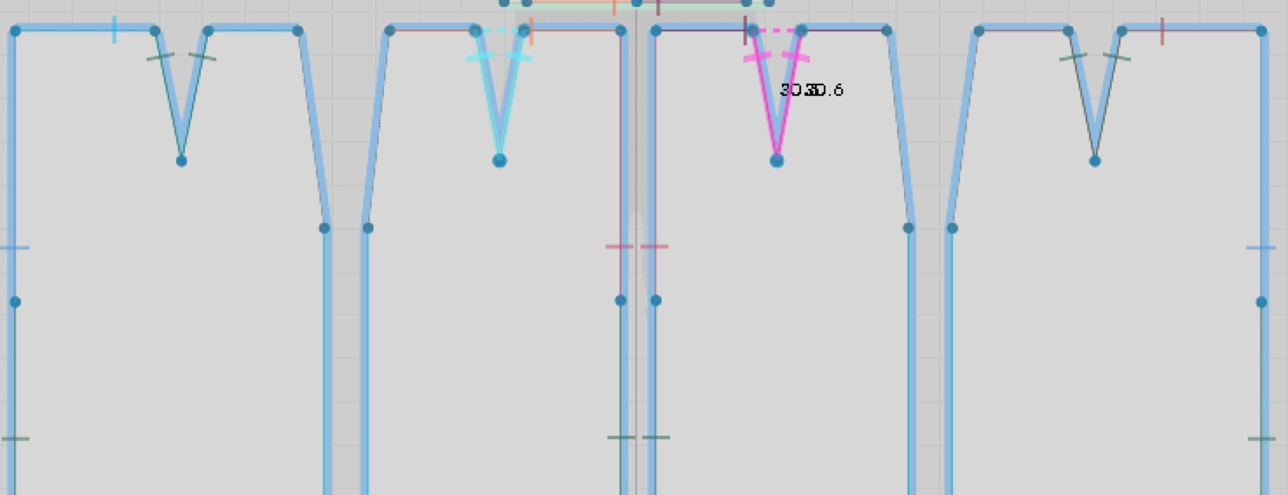 また、シュミレーション結果で太もも付近にだぶつきが見られたので、頂点を追加してタックをいれてみた。