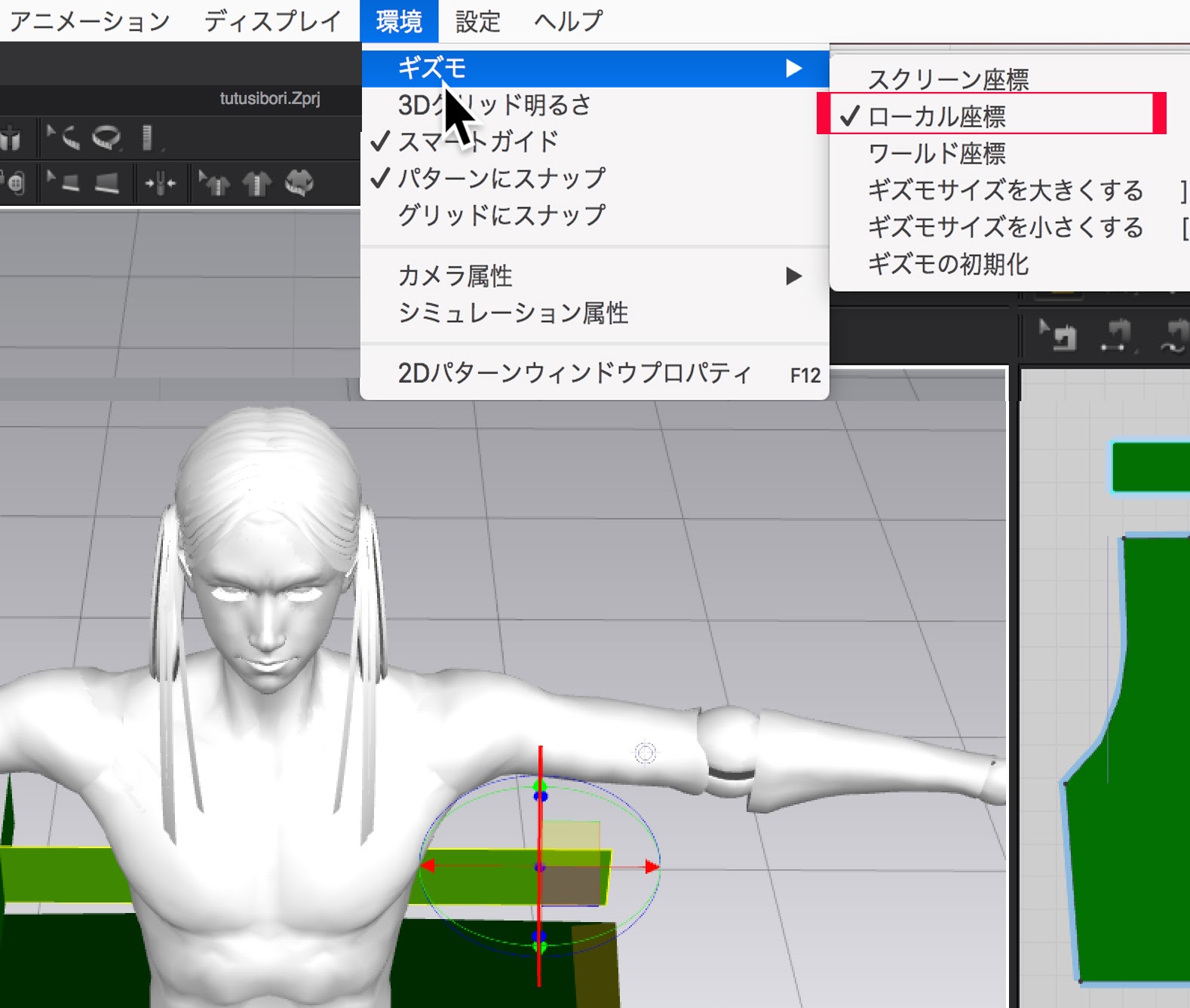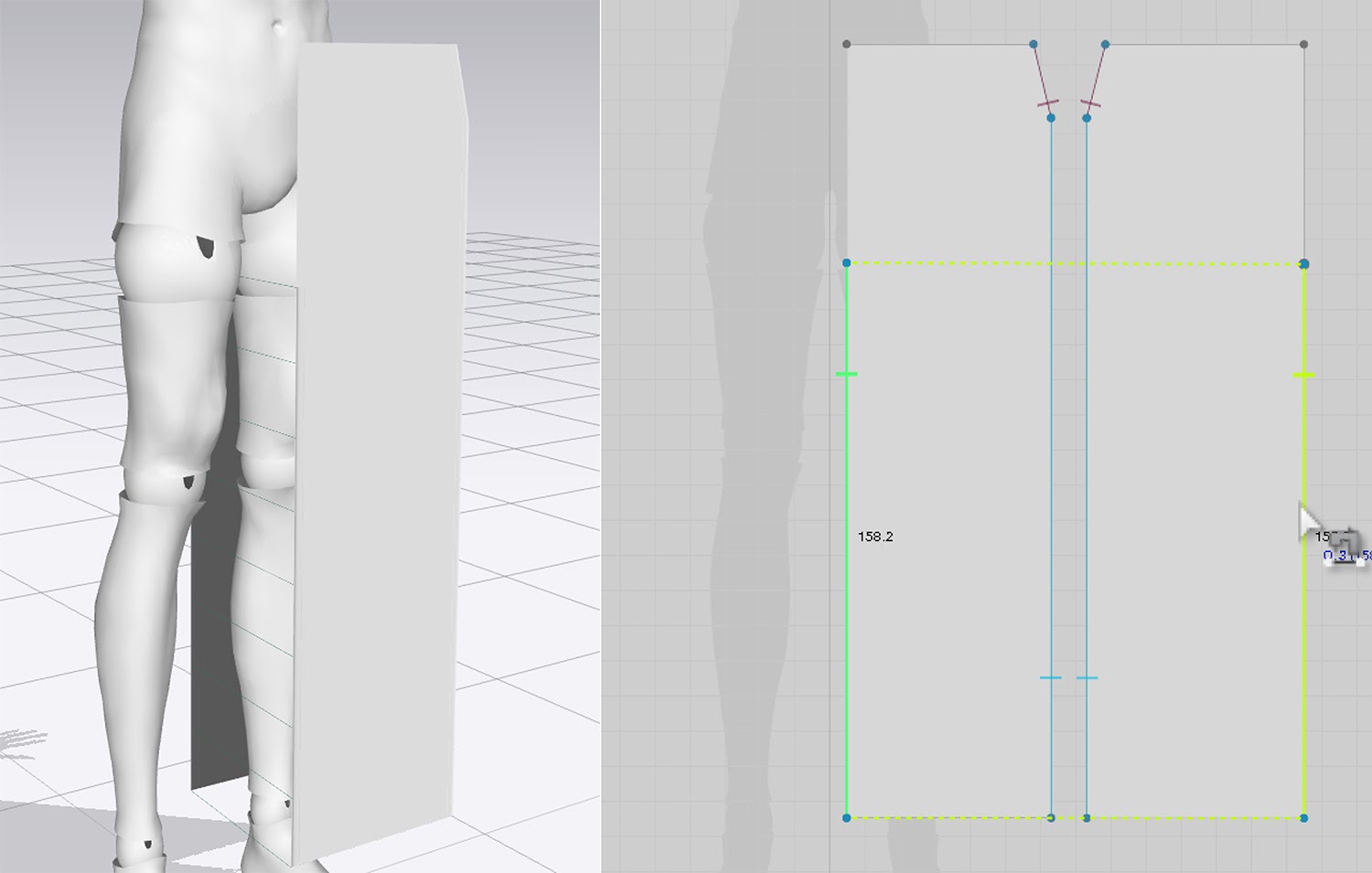Marvelous Designerでは、左が3Dウィンドウ、右が2Dパターンウィンドウになっている。