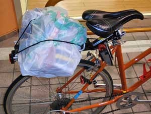 さて、荷台がついたのはいいが、同じ位置につけていたサドルバッグをつけるスペースがなくなってしまったw。