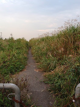 地図みても、どうやらこの辺りは川すぐ脇に道がないっぽいな。だんだん落ちて行く日とにらめっこしつつ、ひたすらサイクリングロードを進む。地元の中高生らしき人達が結構使っているようだ。