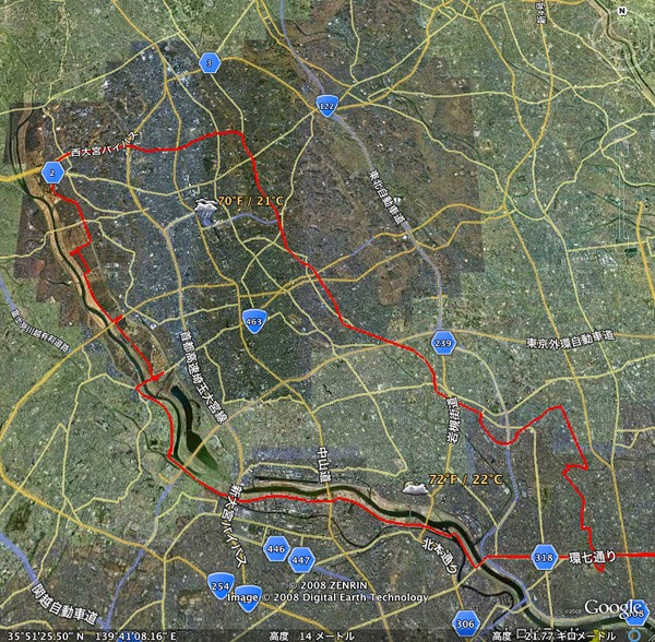 実は途中でナビがまたトチ狂って時間を無駄にしたこともあり、今度はコンパスだけをたよりにひたすら西へ西へ。16号をたどっていけば荒川にでられるようだ。