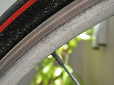 まず、タイヤのこまかいひび。以前自分でつけかえたものだから、そう古くはないはずだけど。こういうのは問題ないんかな?