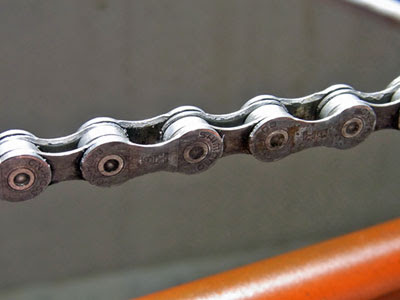 引っ越しのバタバタが続いていたため、しばらくは泥はねさえ拭ってなかったので、チェーンも車体もどろどろ。
