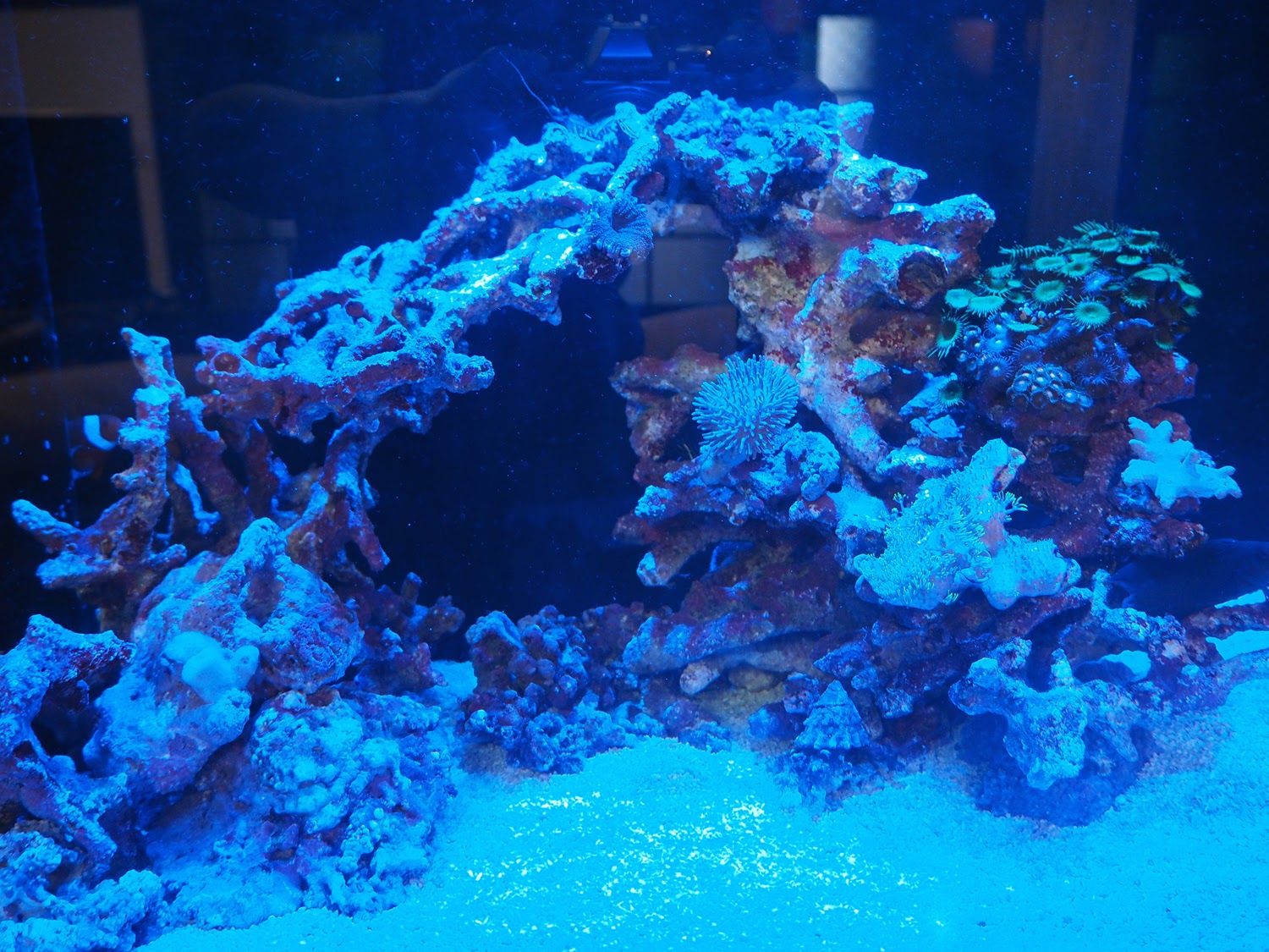 かっこよく組んでもらったライブロック組みは、水槽に手を突っ込んだとたんに崩してしまい。またもとの安定感だけ求めたがさつなアーチに(--;)
