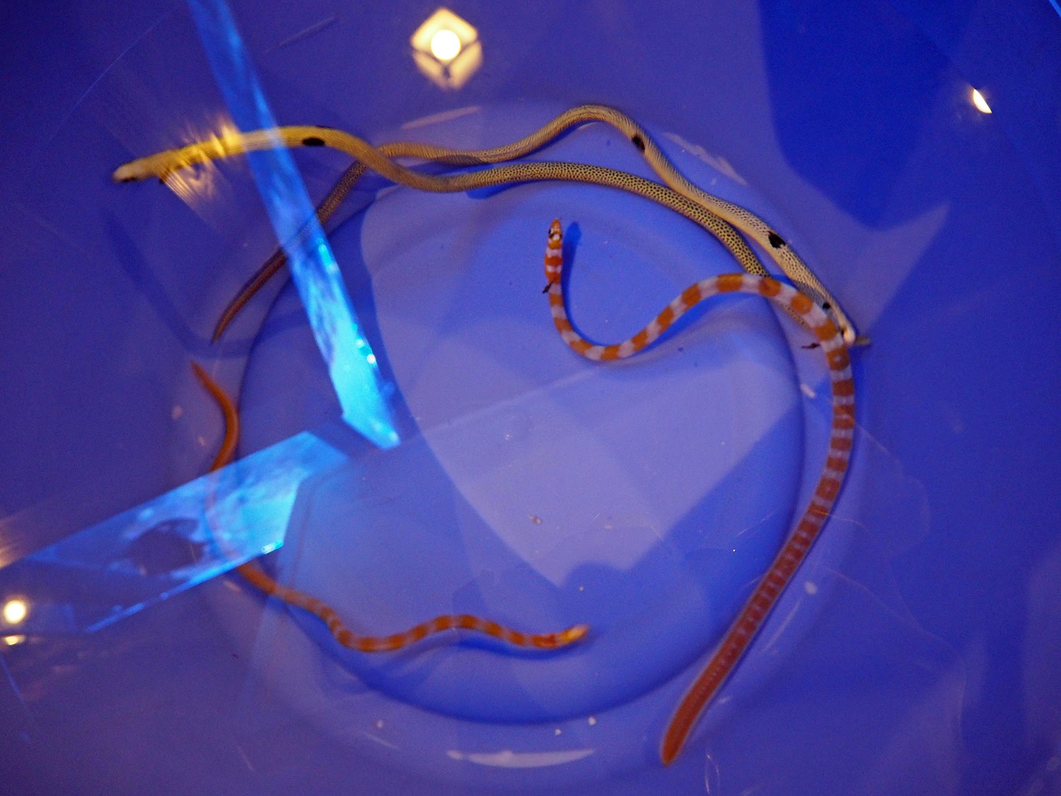 前回最初に迎え入れた時は、結構みんなすぐに砂に潜り込んだんだけど、今回の子らはしばらく水槽を上下しながらめちゃくちゃ泳ぎまくり、尻尾が砂についても潜る気配がない。