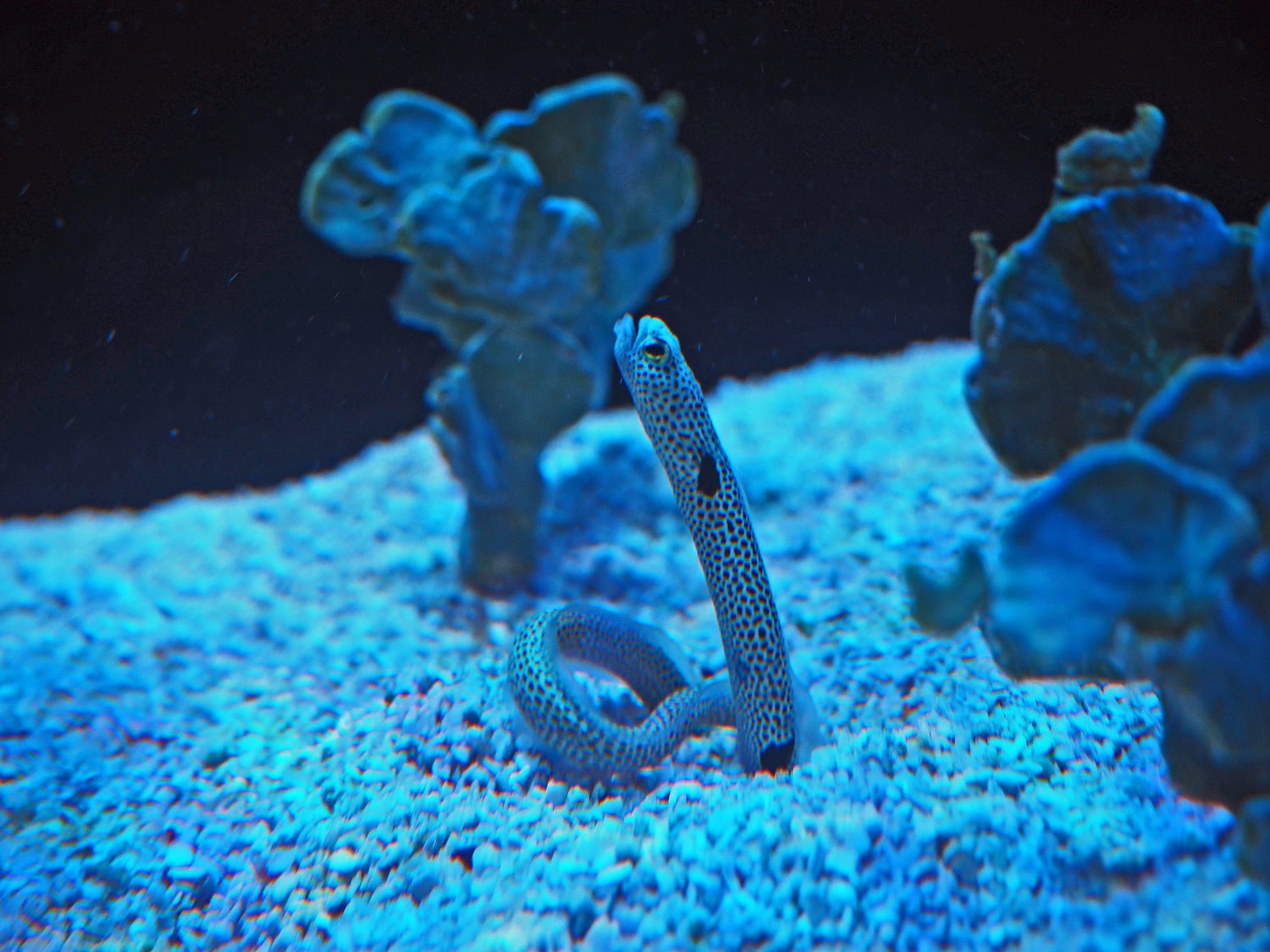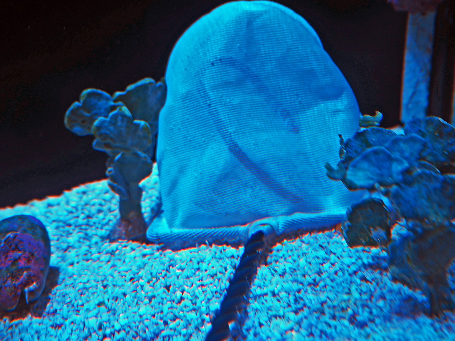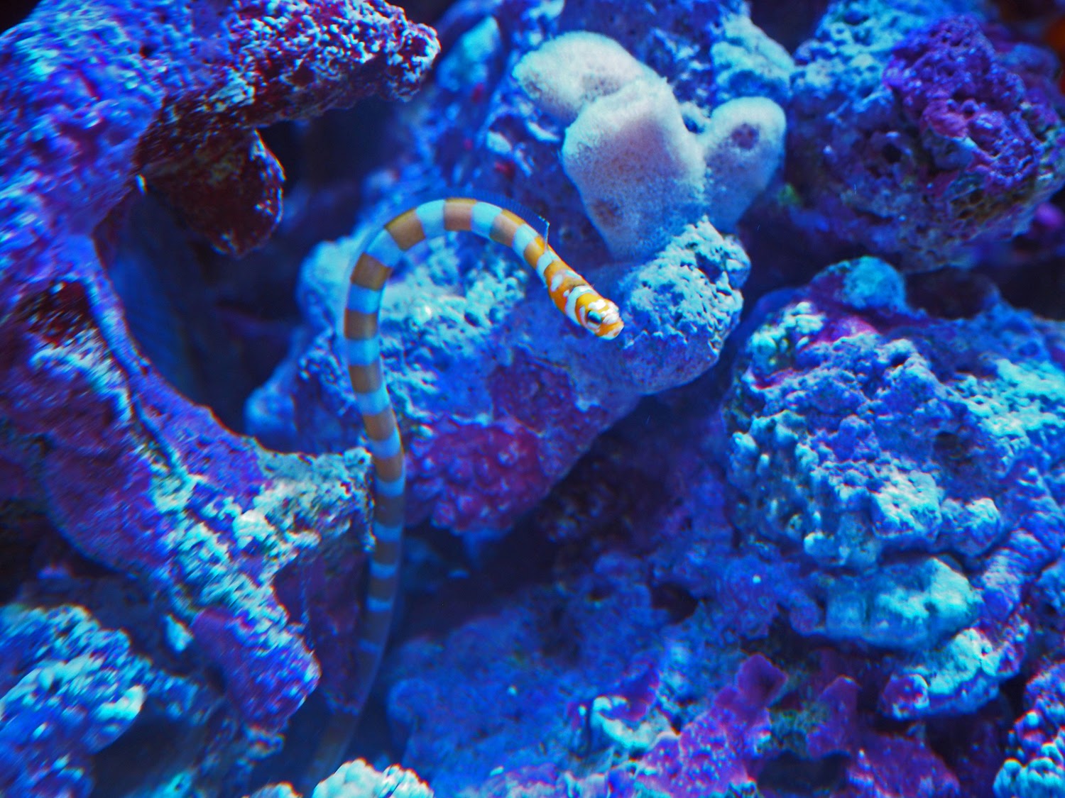 砂に潜ったわけではなく、ライブロックの岩の隙間に体を潜り込ませてるだけ。逆側から尾がでちゃったりしてるのだが、そこで良いのか??