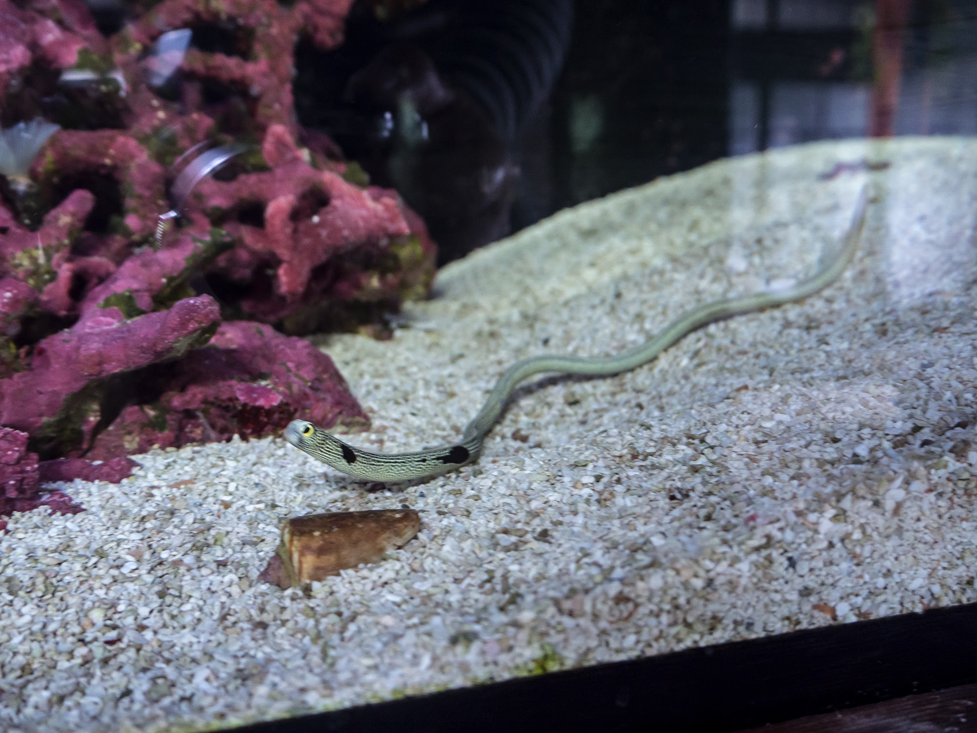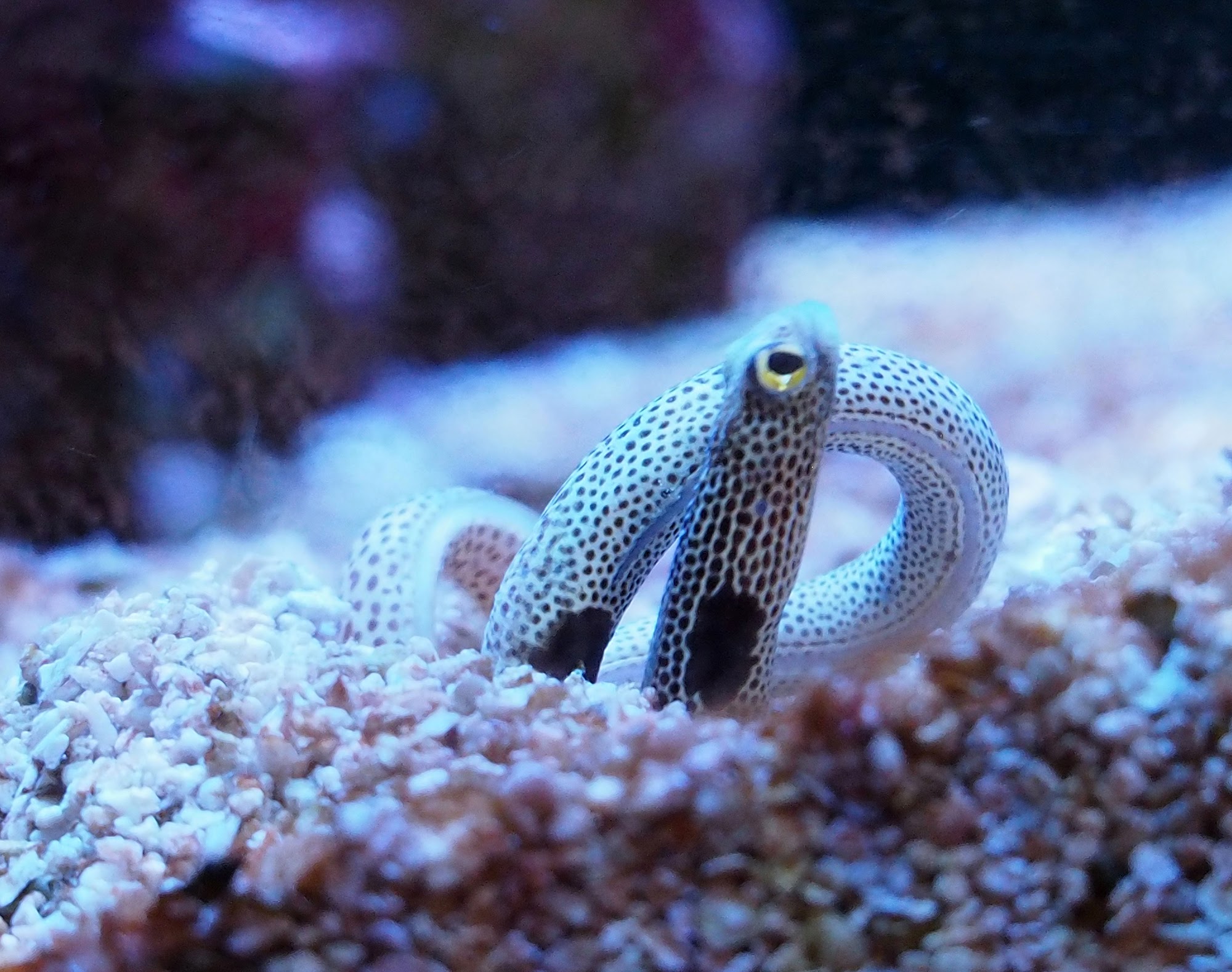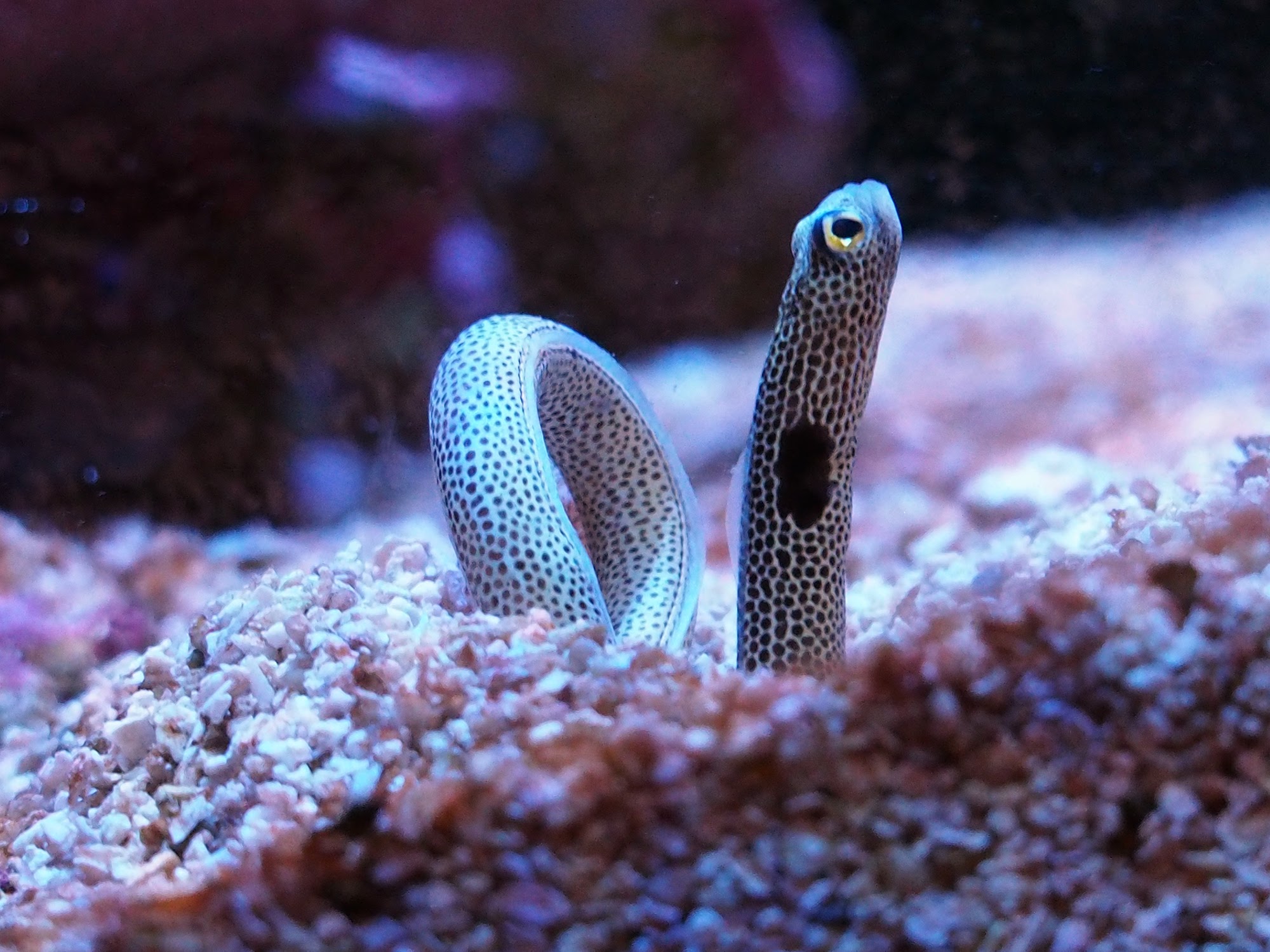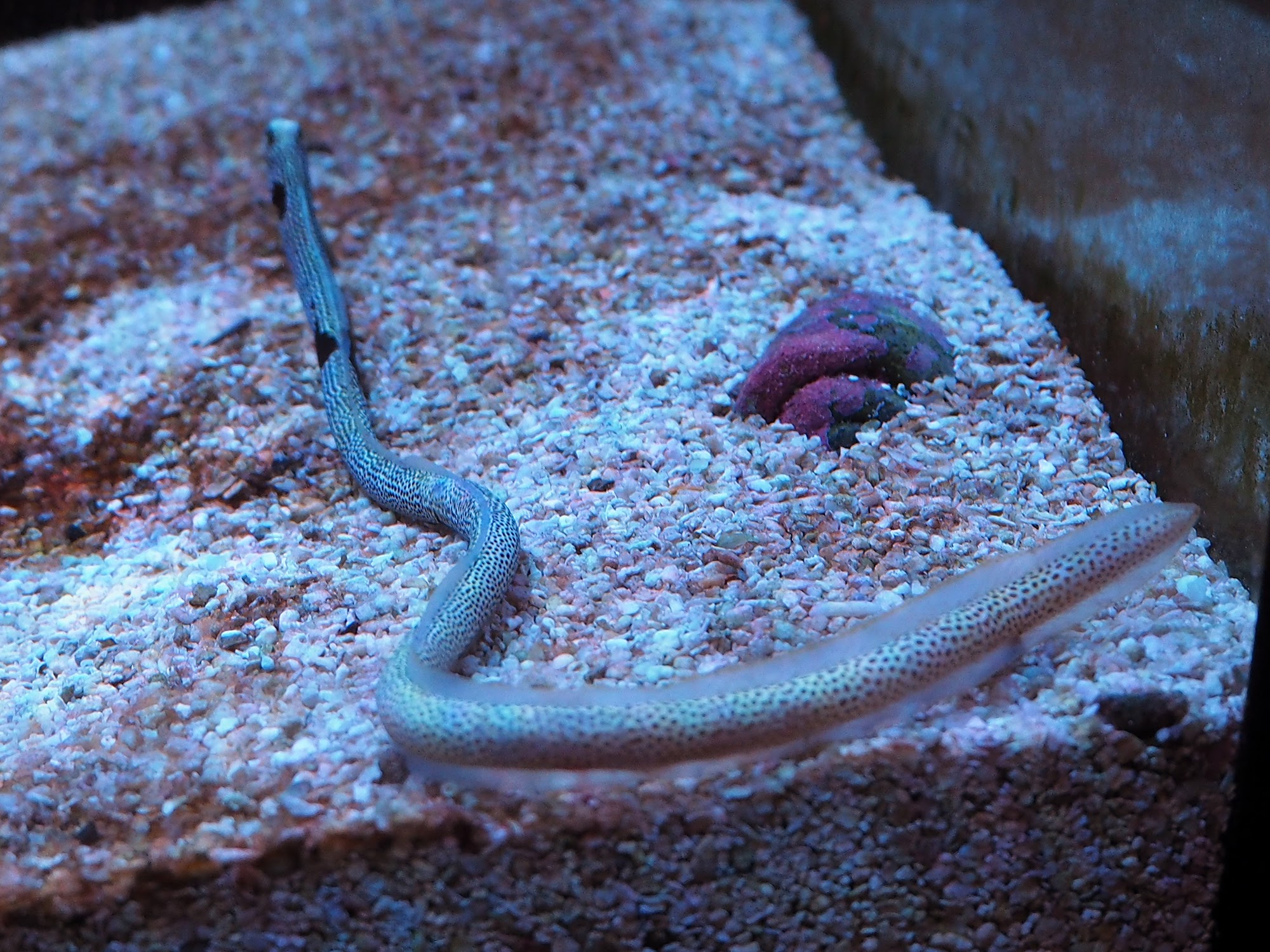 すんなり潜ってくれた新入りのチンアナゴであったが、4日前ぐらいからだんだん砂から出る部分が増えてきた。