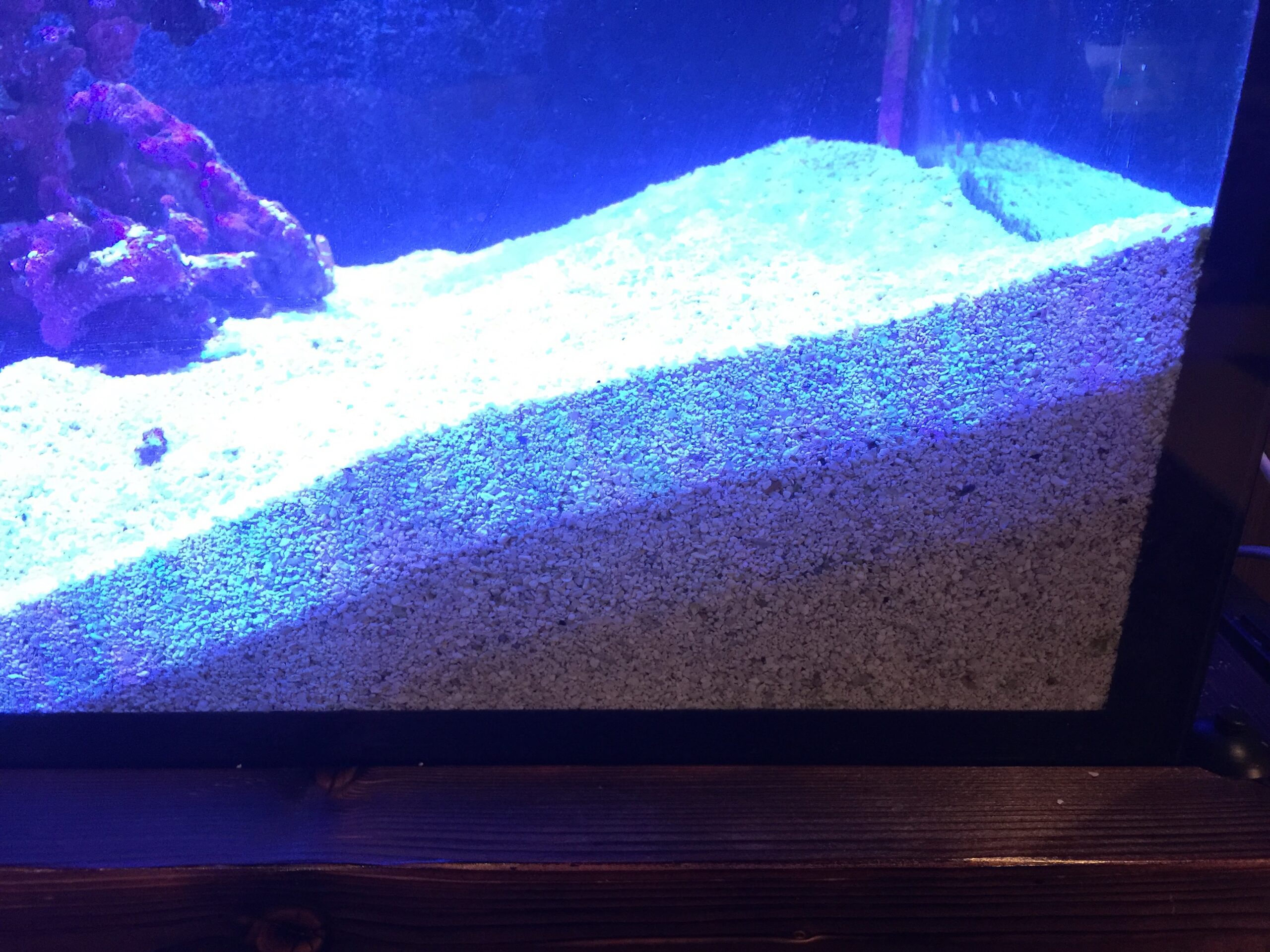 掃除の間基本的に生き物はそのままで、潜ってるチンアナゴの位置を確認して、一番遠い側の砂から崩していきました。そのまま旗倒しみたくその部分だけ残して。。。