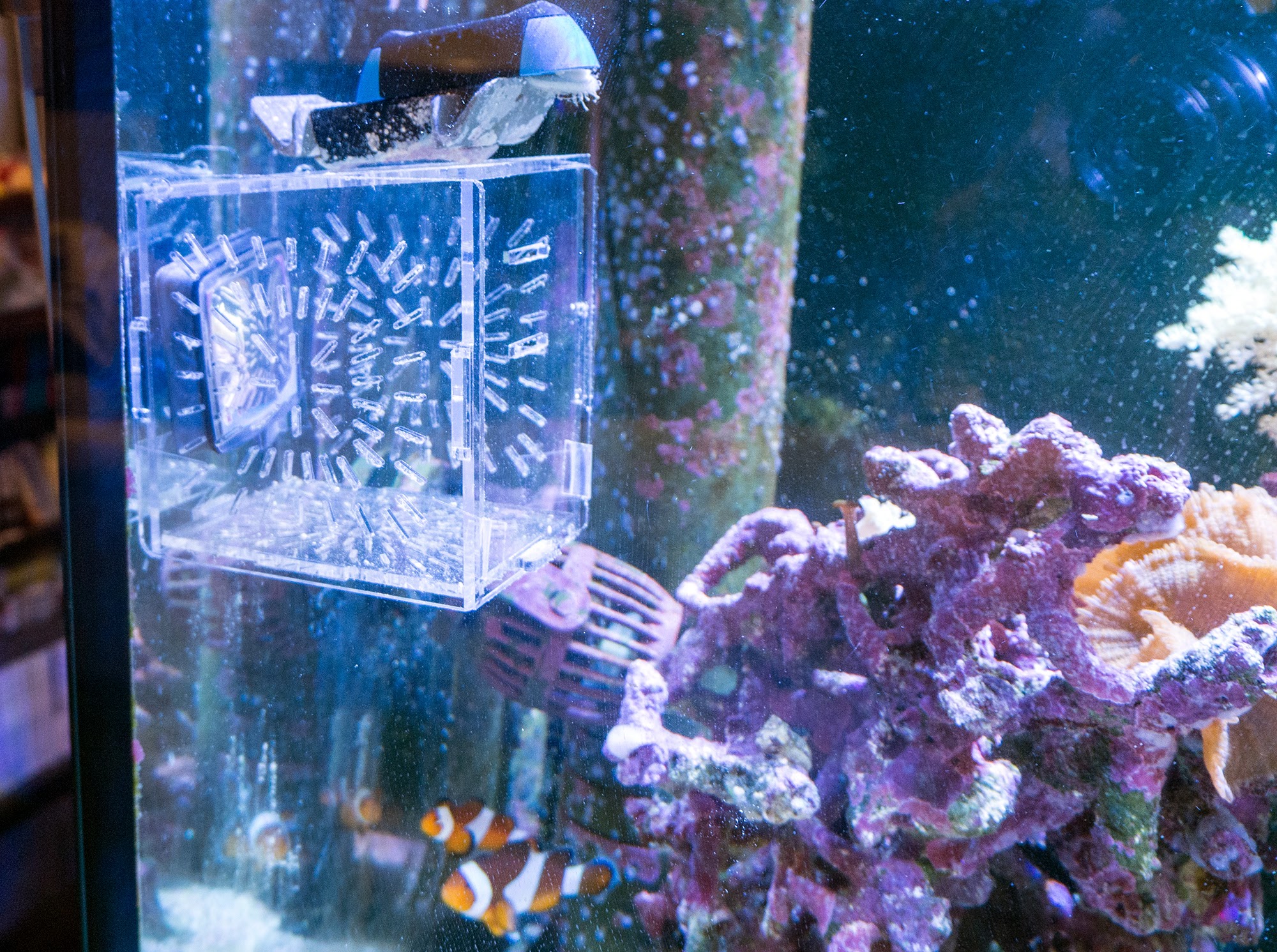 潜らなくてもおとなしくしていれば良いのだけど、わざわざ砂場をセパレーターで区切っても、サンゴやライブロックうじゃうじゃの方へ脱走する。