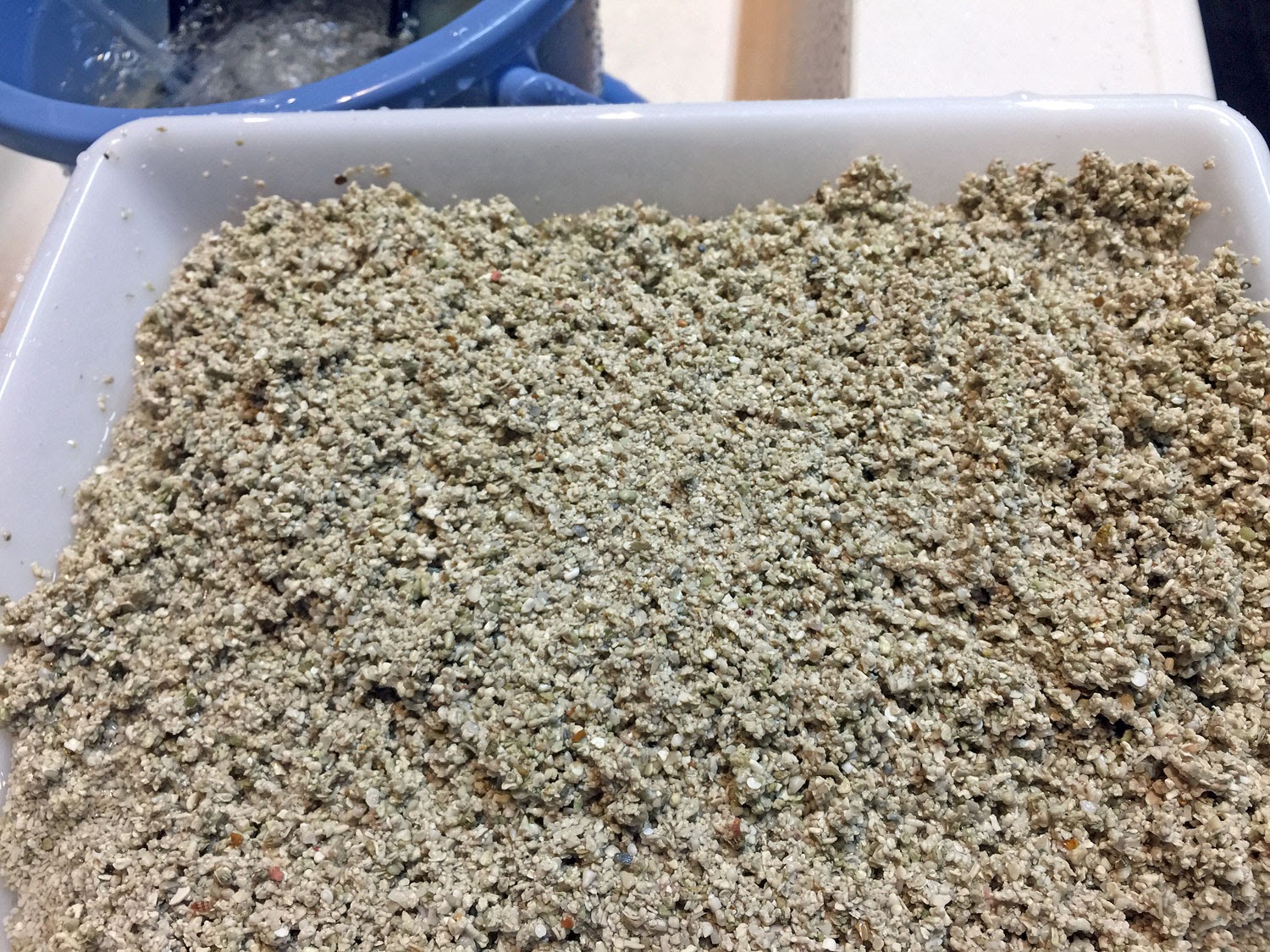 もうほぼ見当たらなくなったら、一応水を切りながらバット状の容器に少しずつ移しながら平らにならし、残っているやつを発見したらここで取り除く。